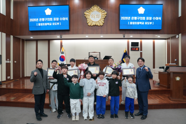 [21ÀºÆò´º½º=±è¼öÁ¤±âÀÚ] ÀºÆò±¸ÀÇȸ(ÀÇÀå ¼Û¿µÃ¢)´Â 8ÀÏ ÀºÆò±¸ÀÇȸ º»È¸ÀÇÀå¿¡¼ ÀÀ¾ÏÃʵîÇб³ À¯µµºÎ Çлý ¹× Áöµµ±³»ç¿¡°Ô ǥâÀåÀ» ¼ö¿©Çϰí, ±×°£ÀÇ ³ë·Â°ú ¼º°ú¸¦ °Ý·ÁÇß´Ù.