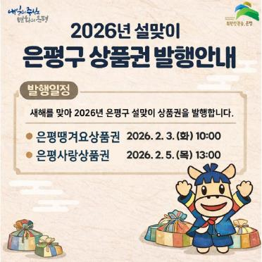 [21ÀºÆò´º½º=±è¼öÁ¤ ±âÀÚ] ÀºÆò±¸(±¸Ã»Àå ±è¹Ì°æ)´Â ¼³ ¸íÀýÀ» ¸Â¾Æ 2¿ù ù° ÁÖ¿¡ ÀºÆò¶¯°Ü¿ä»óǰ±Ç°ú ÀºÆò»ç¶û»óǰ±ÇÀ» ¹ßÇàÇÑ´Ù°í ¹àÇû´Ù. ÀºÆò¶¯°Ü¿ä»óǰ±ÇÀº ³»´Þ 3ÀÏ ¿ÀÀü 10½ÃºÎÅÍ 1¾ï 5õ¸¸ ¿ø ±Ô¸ð·Î ÆÇ¸ÅÇÑ´Ù. ÀºÆò»ç¶û»óǰ±ÇÀº ³»´Þ 5ÀÏ ¿ÀÈÄ 1½ÃºÎÅÍ 50¾ï ¿ø ±Ô¸ð·Î ¹ßÇàÇÒ ¿¹Á¤ÀÌ´Ù.