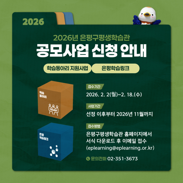 [21ÀºÆò´º½º=±è¼öÁ¤ ±âÀÚ] ÀºÆò±¸(±¸Ã»Àå ±è¹Ì°æ)´Â ÀºÆò±¸Æò»ýÇнÀ°ü°ú ÇÔ²² ¡®½Ã¹ÎÀÌ Ã¤¿ì´Â ¹è¿òÀÇ ÀÏ»ó, »ýµ¿ÇÏ´Â ÇнÀµµ½Ã ÀºÆò¡¯À» Á¶¼ºÇϱâ À§ÇØ ½Ã¹ÎÂü¿©Çü °ø¸ð»ç¾÷ Á¦¾ÈÀÚ¸¦ 18ÀϱîÁö ¸ðÁýÇÑ´Ù°í ¹àÇû´Ù.