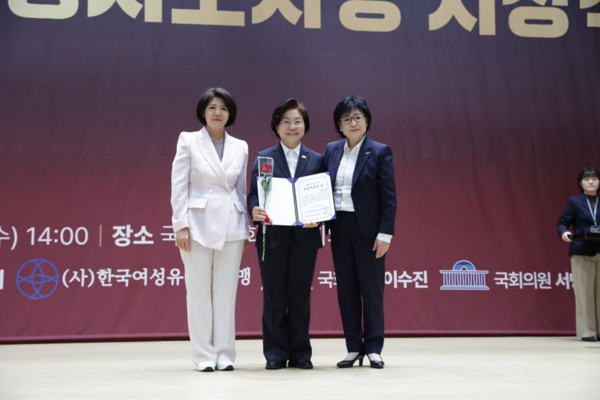 Çѱ¹¿©¼º´ÜüÇùÀÇȸ´Â Áö³ 29ÀÏ ¿©Àǵµ ±¹È¸ÀÇ¿øÈ¸°ü ´ëȸÀǽǿ¡¼ ½Ã»ó½ÄÀ» ¿°í, Ź¿ùÇÑ ¸®´õ½ÊÀ¸·Î ¿©¼ºÀÇ ÁöÀ§ Çâ»ó°ú ¾ç¼ºÆòµî ½ÇÇö¿¡ ±â¿©ÇÑ ±è¹Ì°æ ÀºÆò±¸Ã»Àå¿¡°Ô »óÀ» ¼ö¿©Çß´Ù°í ¹àÇû´Ù.