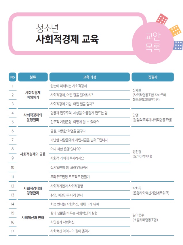 ±³ÀçÁ¦ÀÛÀÌ ÁÖ¹ÎÂü¿©¿¹»êÀ̶ó´Â Ãø¸éÀ» °í·ÁÇØ »çȸÀû°æÁ¦±â¾÷ ÁÖüµéÀÌ Á÷Á¢ Âü¿©ÇØ ¸¸µé ¼ö ÀÖµµ·Ï ÇÏ´Â Âü¿©Çü û¼Ò³â »çȸÀû°æÁ¦±³Àç·Î ¸¸µé¾ú´Ù. ÀÌ·¯ÇÑ Âü¿©·Î ±âº»°úÁ¤ »Ó¸¸ ¾Æ´Ï¶ó ±â¾÷ÀÌ ¼ö¾÷ÇÒ ¼ö ÀÖ´Â ±â¾÷°úÁ¤À¸·Î ±¸¼ºÇØ À̷аú ÇöÀå ±³À°ÀÌ ÀûÀýÇÏ°Ô Á¶ÈµÇ¾ú´Ù.