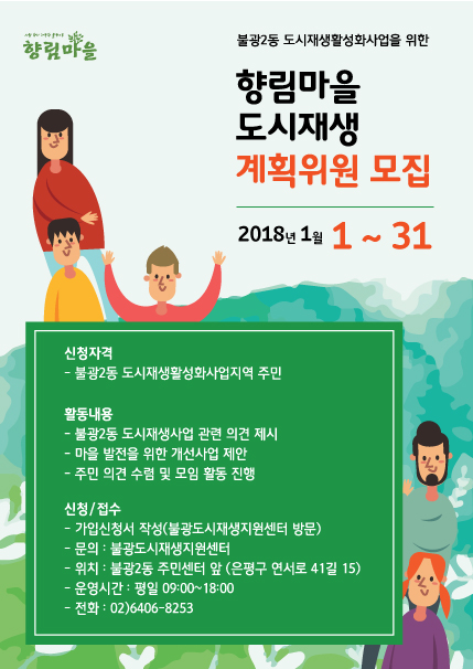 ¼¿ï ÀºÆò±¸ ºÒ±¤ µµ½ÃÀç»ýÁö¿ø¼¾ÅÍ¿¡¼´Â ÁֹΠÁÖµµÀÇ µµ½ÃÀç»ýȰ¼ºÈ°èȹ ¼ö¸³À» À§ÇØ ¡°Ç⸲ µµ½ÃÀç»ý °èȹ´Ü¡±À» ±¸¼º ¿î¿µÇÒ ¿¹Á¤À̸ç, À̸¦ À̲ø¾î °¥ ÁֹΠÀ§¿øÀ» 1¿ù 31ÀϱîÁö ¸ðÁýÇÑ´Ù°í ¹àÇû´Ù.