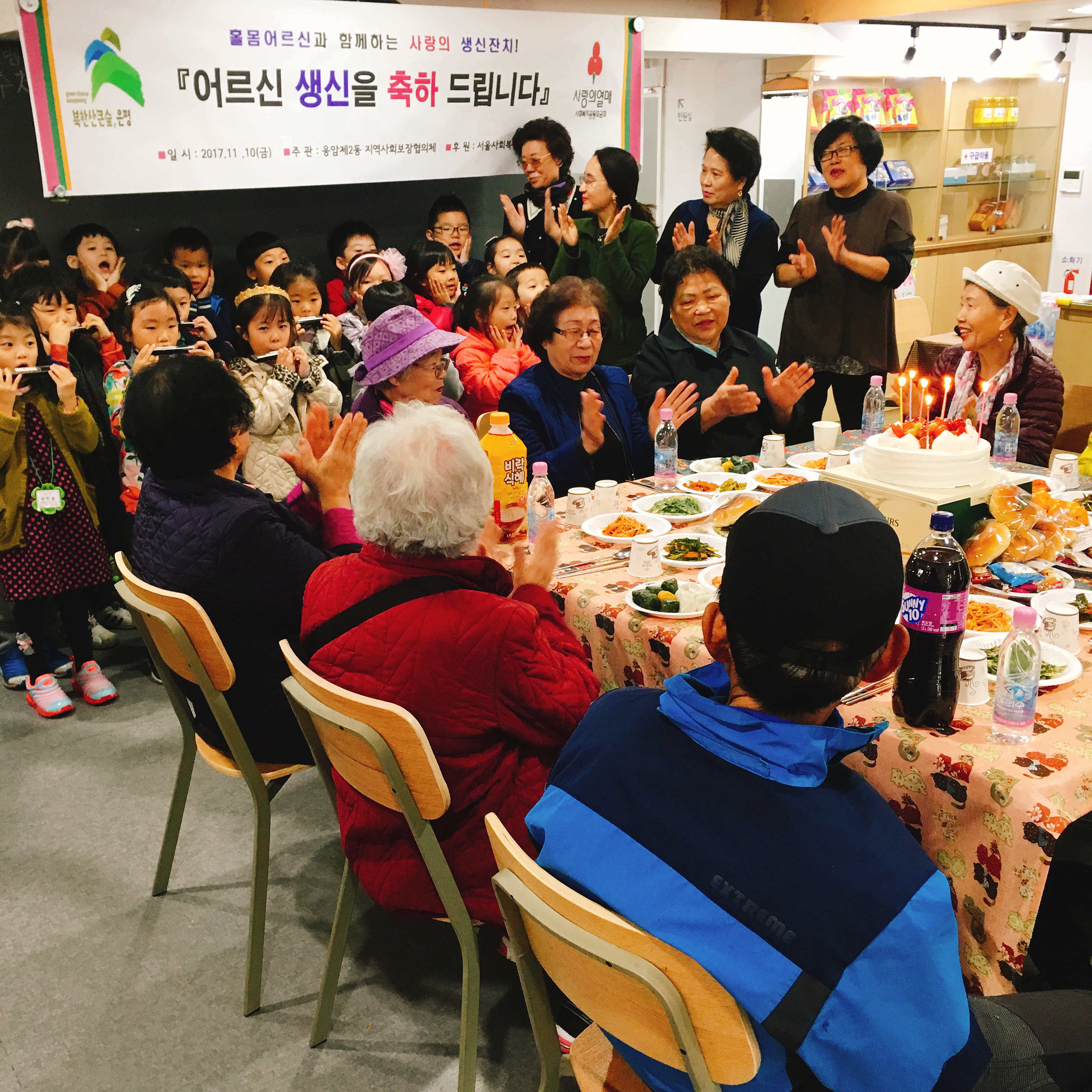 Áö¿ª»çȸº¸ÀåÇùÀÇü À§¿øµéÀº ¾î¸£½ÅµéÀÌ ¸À³ª°Ô µå½Ç ¼ö ÀÖµµ·Ï »ý½Å À½½ÄÀ» Á¤¼º²¯ ¸¶·ÃÇÏ¿´À¸¸ç »ýÀϳ¯ Ȧ·Î ½Ä»çÇÏ´Â ¿Ü·Î¿òÀ» ´Þ·¡µå¸®°í, µû¶æÇÑ ¿ÂÁ¤À» ÀüÇÏ¿© ¾î¸£½ÅµéÀÌ »îÀÇ ÀÇ¿åÀ» °®°í °Ç°ÇÑ »ýȰÀ» ÇÏ½Ç ¼ö ÀÖµµ·Ï ÀÜÄ¡¸¦ ÁغñÇÏ¿´´Ù.