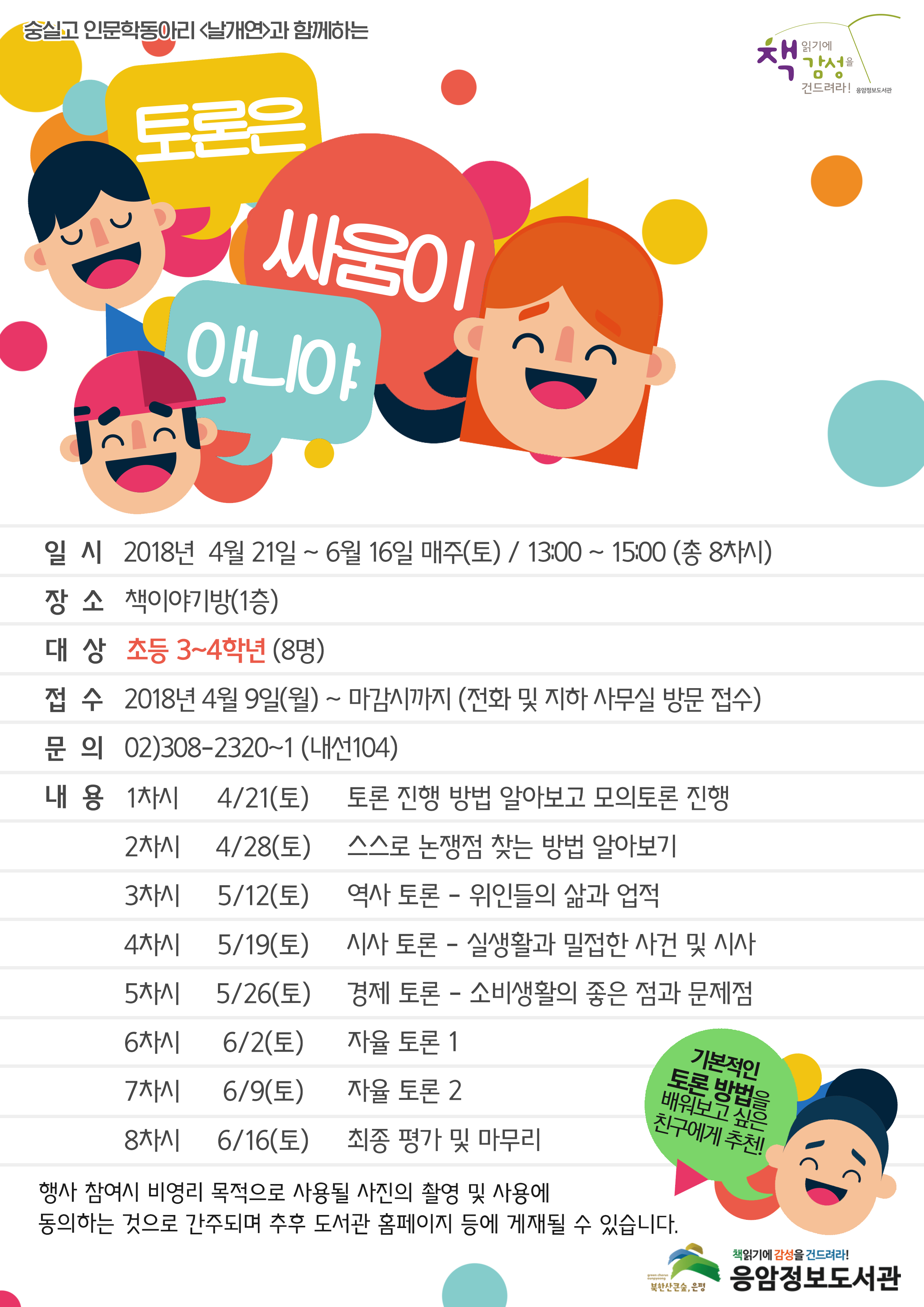 ¡¸³¯°³¿¬°ú ÇÔ²²ÇÏ´Â ¡®Åä·ÐÀº ½Î¿òÀÌ ¾Æ´Ï¾ß!¡¯¡¹¿¡¼´Â Åä·Ð°ú ½º½º·Î ³íÀïÁ¡À» ã´Â ¹æ¹ýÀ» ¾Ë¾Æº¸°í ¿ª»ç, ½Ã»ç, °æÁ¦ µî ´Ù¾çÇÑ ÁÖÁ¦·Î ½ÇÁ¦ Åä·ÐÀ» ÁøÇàÇØº»´Ù. ¡¸³¯°³¿¬°ú ÇÔ²²ÇÏ´Â ¡®³í¸®°¡ ¼ú¼ú, »ýȰÅä·Ð 8±³½Ã¡¯¡¹¿¡¼µµ »ýȰ ¼Ó¿¡¼ ãÀº ´Ù¾çÇÑ ÁÖÁ¦·Î Åä·ÐÀ» ÁøÇàÇϰíÀÚ ÇÑ´Ù. ¸»ÇÒ ¼ö ÀÖ´Â Àڽۨ°ú »ç°í·ÂÀ» Ű¿ì´Âµ¥ ´õ¾øÀÌ ÁÁÀº ½Ã°£ÀÌ µÉ °ÍÀÌ´Ù.