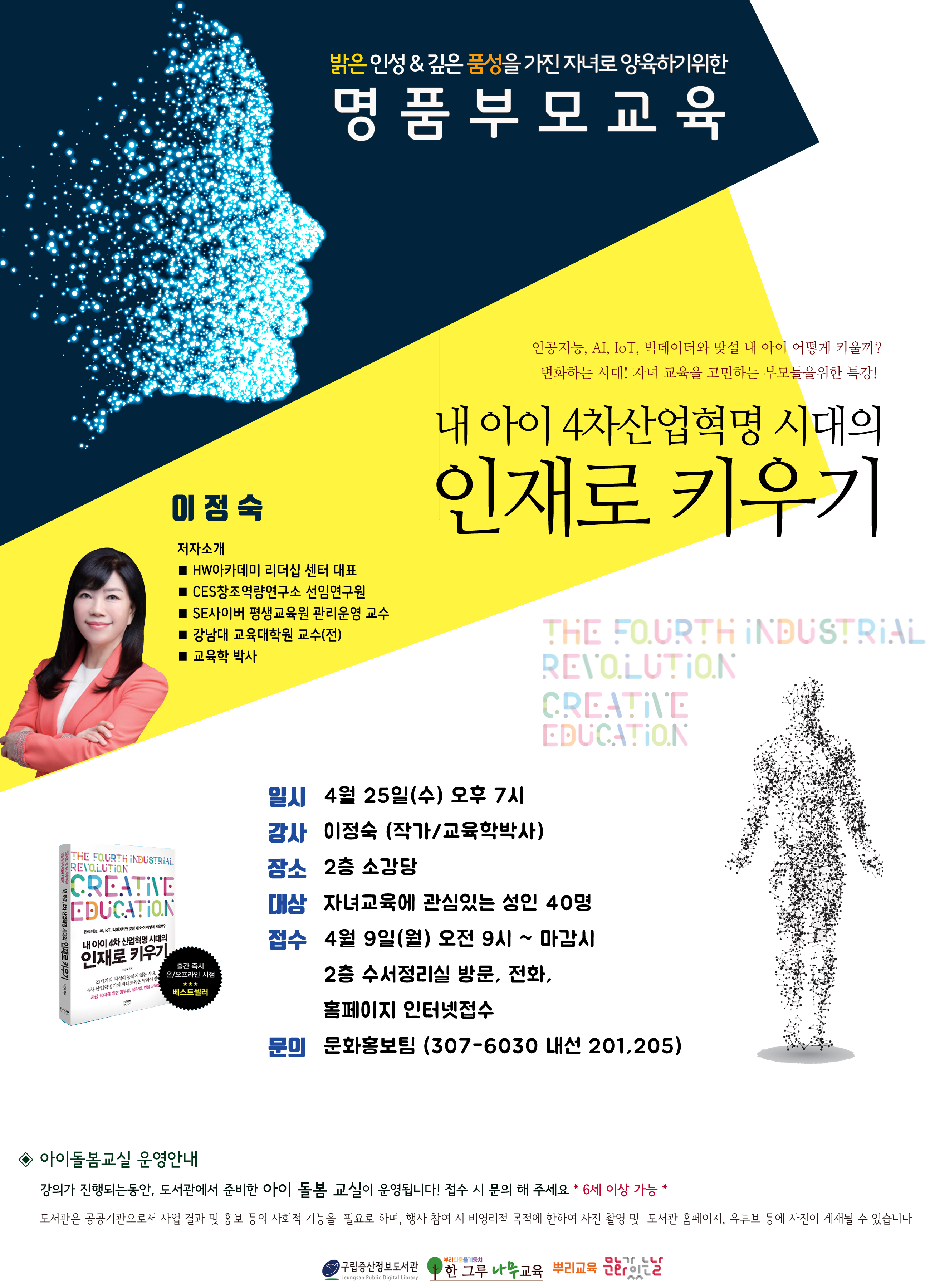 ¼¿ï ÀºÆò±¸ ±¸¸³Áõ»êÁ¤º¸µµ¼°ü(°üÀå ±è¼÷°æ)Àº ¿À´Â 25ÀÏ ¡®³» ¾ÆÀÌ 4Â÷»ê¾÷Çõ¸í½Ã´ëÀÇ ÀÎÀç·Î Ű¿ì±â¡¯(ÀÌÁ¤¼÷ Àú)¸¦ ÁÖÁ¦·Î ¸íǰºÎ¸ð±³À° Ư°À» ½Ç½ÃÇÑ´Ù.