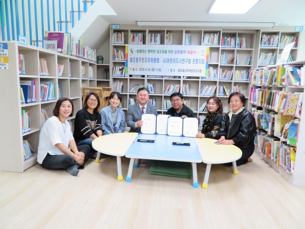 ÀºÆò±¸ ´ëÁ¶µ¿ÁÖ¹ÎÀÚÄ¡À§¿øÈ¸(À§¿øÀå ±èÀͳ²)´Â ÁÖ¹ÎÀÚÄ¡ Ȱ¼ºÈ¸¦ À§ÇÏ¿© ´ëÁ¶²Þ³ª¹«¾î¸°µµ¼°ü ¿î¿µ±â°üÀÎ »ç)¾î¸°À̵µ¼¿¬±¸È¸ ÀºÆòÁöȸ(ȸÀå ÀÌÁ¤Çý)¿Í Áö³ 24ÀÏ ¾ç ±â°ü ¹ßÀüÀ» À§ÇØ °øµ¿À¸·Î ³ë·ÂÇϰíÀÚ ¾÷¹«Çù¾àÀ» ü°áÇÏ¿´´Ù.