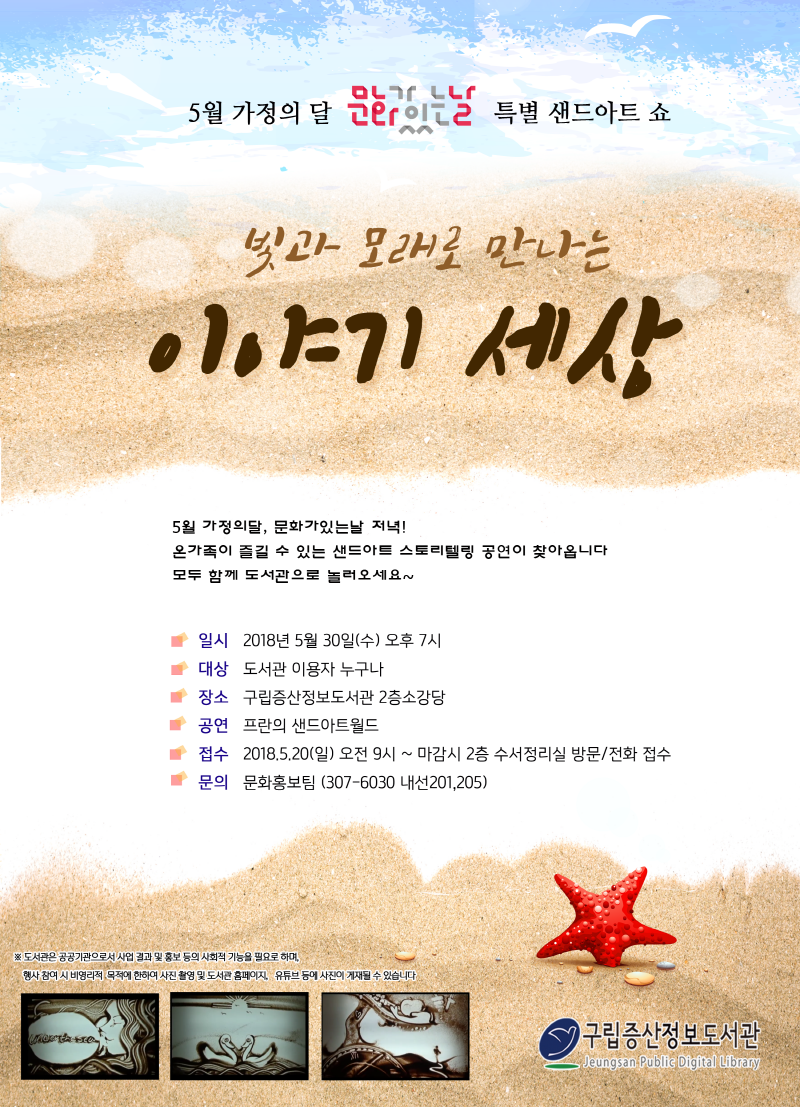 ±¸¸³Áõ»êÁ¤º¸µµ¼°ü(°üÀå ±è¼÷°æ)Àº ¿À´Â 5¿ù 30ÀÏ ¼ö¿äÀÏ Àú³á7½Ã, °¡Á¤ÀÇ ´Þ ¹®È°¡ ÀÖ´Â ³¯À» ¸Â¾Æ °¡Á· ¸ðµÎ°¡ Áñ±æ ¼ö ÀÖ´Â »÷µå¾ÆÆ® ½ºÅ丮ÅÚ¸µ °ø¿¬À» °³ÃÖÇÑ´Ù.