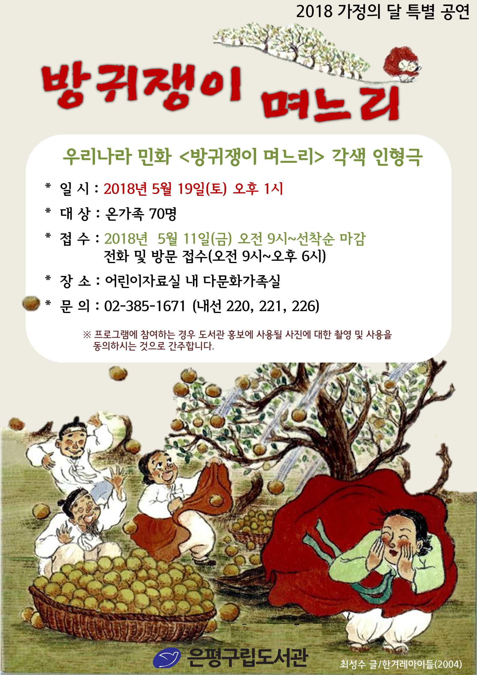 °¡Á¤ÀÇ ´ÞÀ» ¸ÂÀÌÇÏ¿© ¸¶·ÃµÈ À̹ø °ø¿¬Àº ¿ì¸®³ª¶óÀÇ ¹Îȸ¦ âÀÛ ÀÎÇü±ØÀ¸·Î °¢»öÇÏ¿©, À¯¾ÆºÎÅÍ ¼ºÀαîÁö Àü ¿¬·ÉÀÌ ÀÌÇØÇϱ⠽±°í Áñ°Ì°Ô Âü¿©ÇÒ ¼ö ÀÖµµ·Ï ±¸¼ºµÇ¾ú´Ù. ¿ì½º²Î½º·¯¿î ¡®¹æ±Í¡¯¸¦ ÁÖÁ¦·Î ÇÑ ÀÌ ÀÎÇü±ØÀº ¹æ±Í¸¦ Àß ²ï´Ù°í ¼Ò¹®ÀÌ ³ ¿©ÀÎÀÌ ½ÃÁýÀ» °¡¼ ¹úÀÎ À¯ÄèÇÑ ¼Òµ¿À» ±×¸° ³»¿ëÀ¸·Î½á ¿ì¸® ¹Î¼Ó¹®ÇÐÀÇ ÇØÇÐÀ» Àß º¸¿©ÁØ´Ù.