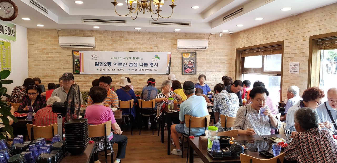 °¥ÇöÁ¦2µ¿(µ¿Àå ÆíŹü)¿¡¼ Áö³ 28ÀÏ °¥ÇöÁ¦2µ¿, ÀºÇ೪¹« »þºê»þºê(ÀºÆò±¸ °¥Çöµ¿ 462-48È£,´ëÇ¥ Çã°æ¶õ)¿¡¼ ¾î¸£½ÅµéÀ» ¸ð½Ã°í, Á¤¼º½º·´°Ô ¸¶·ÃÇÑ ½Ä»ç¸¦ ´ëÁ¢ÇÔÀ¸·Î½á, Áö¿ª¿¡ ºÀ»çÇß´Ù.