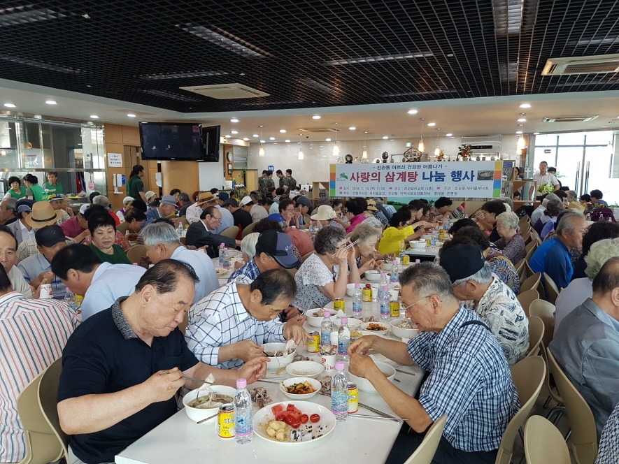 À̹ø Çà»ç´Â Àú¼Òµæ ¾î¸£½Å ¹× °æ·Î´ç ¾î¸£½Å µî 300¸íÀ» ¸ð½Ã°í ¹«´õ¿î ¿©¸§Ã¶ ¾î¸£½ÅµéÀÇ ±â·Âȸº¹À» µ½±â À§ÇØ Áø°üµ¿ »õ¸¶À»ºÎ³àȸ ÁÖ°üÀ¸·Î Á¤¼º½º·¹ ÁغñÇÑ °Ç°½Ä ³ìµÎ »ï°èÅÁ ¹× °úÀÏ, ¶± µîÀ» ´ëÁ¢ÇÏ°í ±â³äǰÀ» Àü´ÞÇß´Ù.