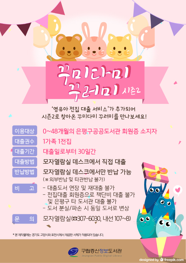 ¡®²Ù¹Ì´Ù¹Ì ²Ù·¯¹Ì ½ÃÁð2¡¯ÀÇ ÀÏȯÀ¸·Î ½Ç½ÃµÇ´Â ÀÌ ¼ºñ½º´Â 0~48°³¿ùÀÇ ÀºÆò±¸°ø°øµµ¼°ü ȸ¿øÁõ ¼ÒÁöÀÚ¶ó¸é ´©±¸³ª ÀÌ¿ëÀÌ °¡´ÉÇϸç, ÇÑ °¡Á· ´ç ÀüÁý 1¼¼Æ®¾¿, 30ÀÏ °£ ´ëÃâ ÇÒ ¼ö ÀÖ´Ù.