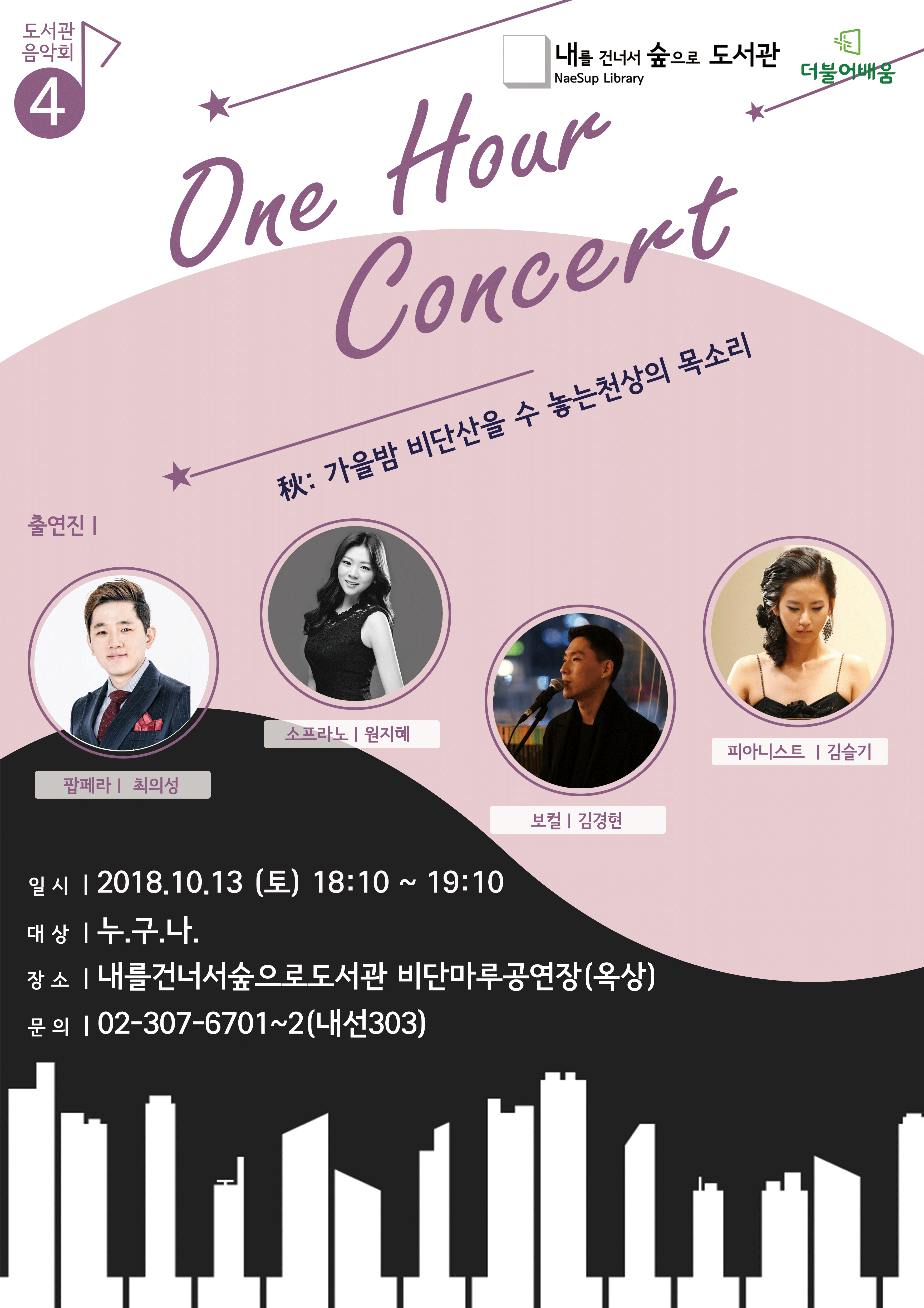 Á¦4ȸ µµ¼°üÀ½¾Çȸ´Â ³»¸¦°Ç³Ê¼½£À¸·Îµµ¼°ü <ºñ´Ü¸¶·ç °ø¿¬Àå(¿Á»ó)>¿¡¼ 10¿ù 13ÀÏ, 18½Ã 10ºÐ¿¡¼ 19½Ã 10ºÐ±îÁö ÁøÇàµÉ ¿¹Á¤ÀÌ´Ù. º°µµÀÇ ½Åû ¾øÀÌ µµ¼°ü ÀÌ¿ëÀÚ´Â ´©±¸³ª Âü¿© °¡´ÉÇÏ´Ù.
