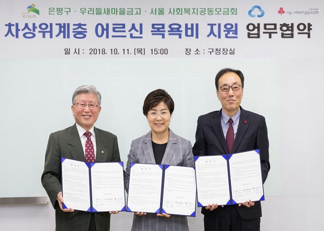 ÀºÆò±¸´Â 11ÀÏ ÀºÆò±¸Ã»Àå½Ç¿¡¼ ¿ì¸®µé»õ¸¶À»±Ý°í(ÀÌ»çÀå ¿°Å°)․¼¿ï»çȸº¹Áö°øµ¿¸ð±Ýȸ(ȸÀå À±¿µ¼®)¿Í ¡°Â÷»óÀ§°èÃþ ¾î¸£½Å ¸ñ¿åºñ Áö¿ø»ç¾÷ ¾÷¹«Çù¾à¡±À» ü°áÇÏ°í °ü³» Â÷»óÀ§°èÃþ ¾î¸£½ÅÀÇ °Ç°ÁõÁø ¹× Ȱ±âÂù ³ëÈÄ»ýȰÀ» º¸ÀåÇÏ´Â µ¥ ÈûÀ» ¸ðÀ¸±â·Î Çß´Ù°í ¹àÇû´Ù.