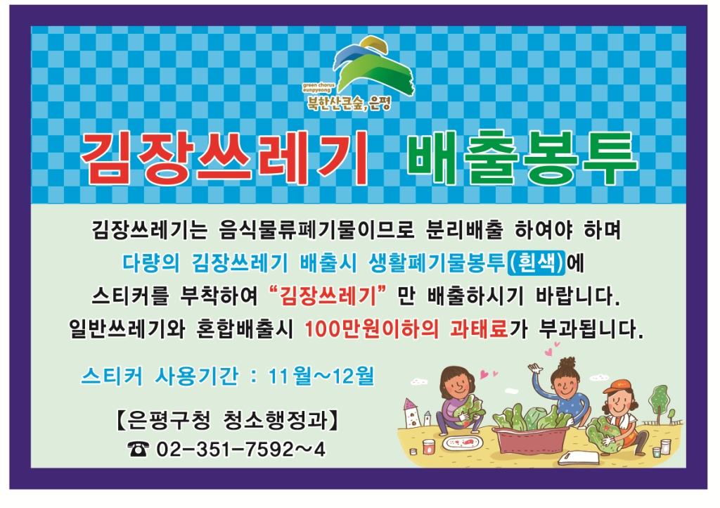ÀºÆò±¸´Â ±èÀåöÀ» ¸Â¾Æ ´Ù·®ÀÇ ±èÀå¾²·¹±â ¹èÃ⠽à ºÒÆíÀ» ÇØ¼ÒÇϰí È¥ÇÕ¹èÃâÀ» ¿¹¹æÇϱâ À§ÇÏ¿©¡¸±èÀå¾²·¹±â ¹èÃâºÀÅõ¡¹Ç¥½Ã ½ºÆ¼Ä¿¸¦ Á¦ÀÛÇÏ¿© Áֹο¡°Ô ¹èºÎÇÑ´Ù°í 17ÀÏ ¹àÇû´Ù.