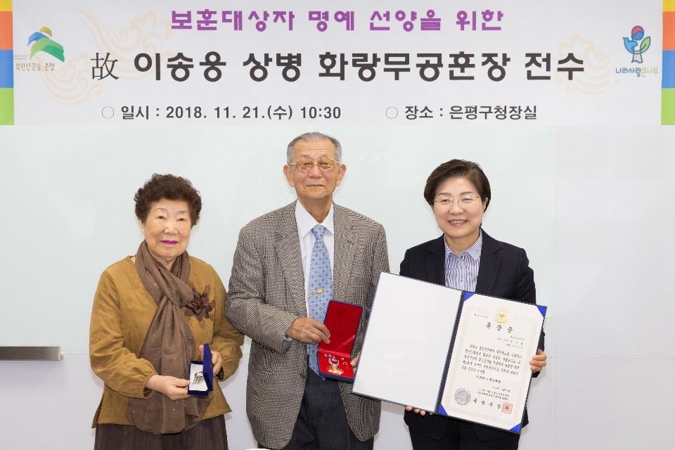 ÀºÆò±¸´Â Áö³ 21ÀÏ ±¸Ã»Àå½Ç¿¡¼ 6.25ÀüÀï¿¡ ÂüÀüÇß´Ù°¡ µÚ´Ê°Ô ¹«°øÈÆÀå ´ë»óÀÚ·Î È®ÀÎµÈ ÍºÀ̼ۿõ »óº´ÀÇ À¯°¡Á·ÀÎ µ¿»ý À̱æÀ¶(80¼¼, ¼Ò¼³°¡)¾¾¿¡°Ô ÈÆÀåÁõ°ú ȶû¹«°øÈÆÀåÀ» Àü¼öÇß´Ù.
