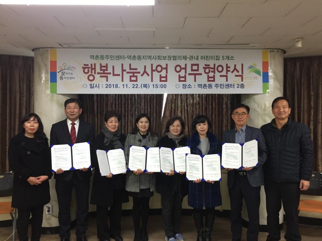 ¿ªÃ̵¿Áֹμ¾ÅÍ(µ¿Àå À̱âÈÆ)¿Í ¿ªÃ̵¿ Áö¿ª»çȸº¸ÀåÇùÀÇü(À§¿øÀå ±è±æ¼º), °ü³» ¾î¸°ÀÌÁý 5°³¼Ò´Â 2018³â 11¿ù 22ÀÏ 15½Ã ¿ªÃ̵¿Áֹμ¾ÅÍ 2Ãþ °Á½ǿ¡¼ ¾÷¹«Çù·ÂÀ» À§ÇÑ Çù¾à¼¸¦ ÀÛ¼ºÇÏ°í °ü³» Àú¼Òµæ ¹× Ãë¾à°èÃþÀÇ º¹Áöü°¨µµ Çâ»óÀ» À§ÇØ »óÈ£ Çù·ÂÇϱâ·Î Çß´Ù.