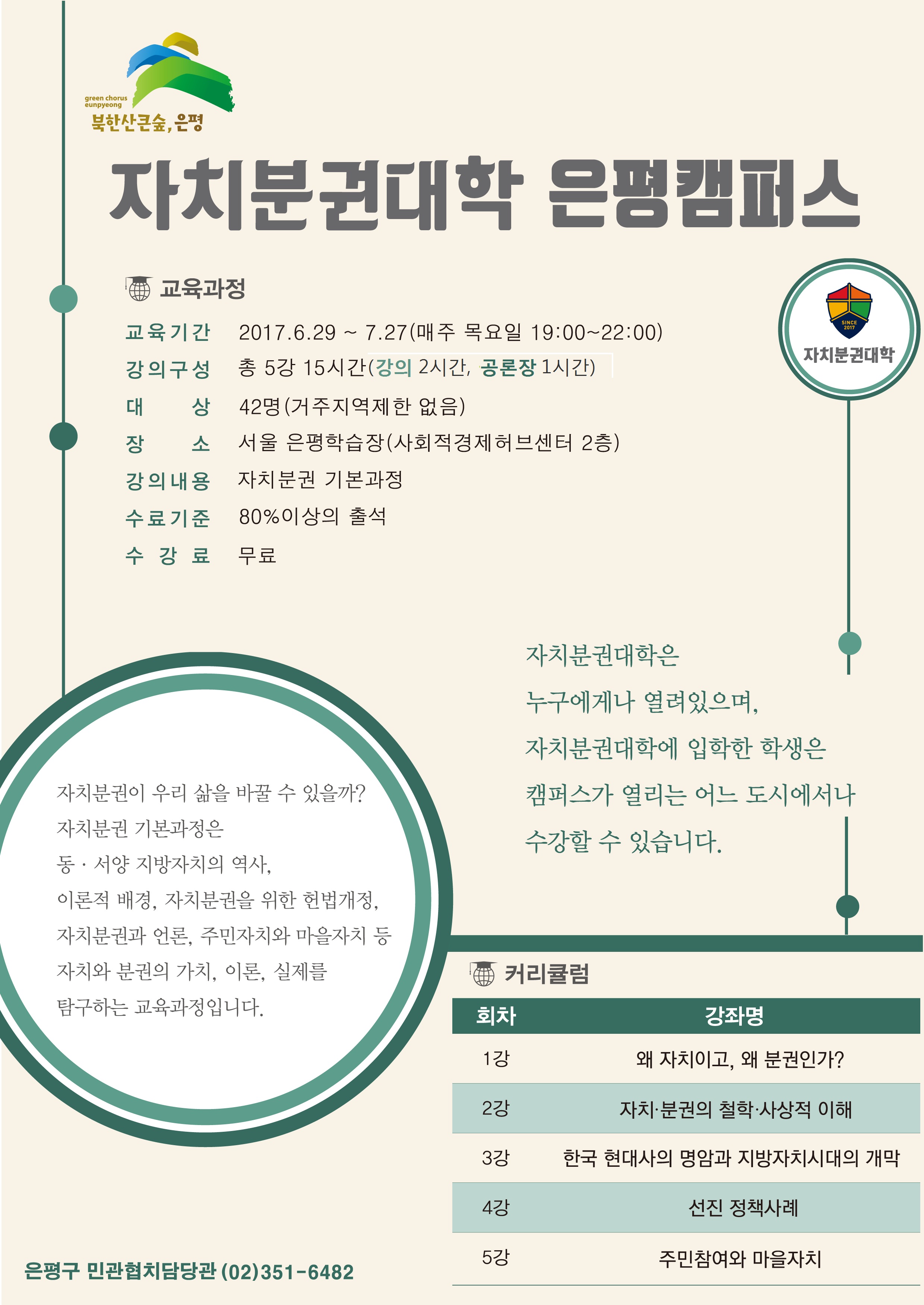ÀºÆò±¸°¡ ÀºÆò½Ã¹Î´ëÇÐ Ä¿¸®Å§·³ÀÇ ÀÏȯÀ¸·Î ÀÚÄ¡ºÐ±ÇÁö¹æÁ¤ºÎÇùÀÇȸ¿Í ÇÔ²²Çϴ Ưº°±³À°°úÁ¤ ¡®ÀÚÄ¡ºÐ±Ç´ëÇÐ ÀºÆòÄ·ÆÛ½º¡¯¸¦ ¿î¿µÇÑ´Ù.