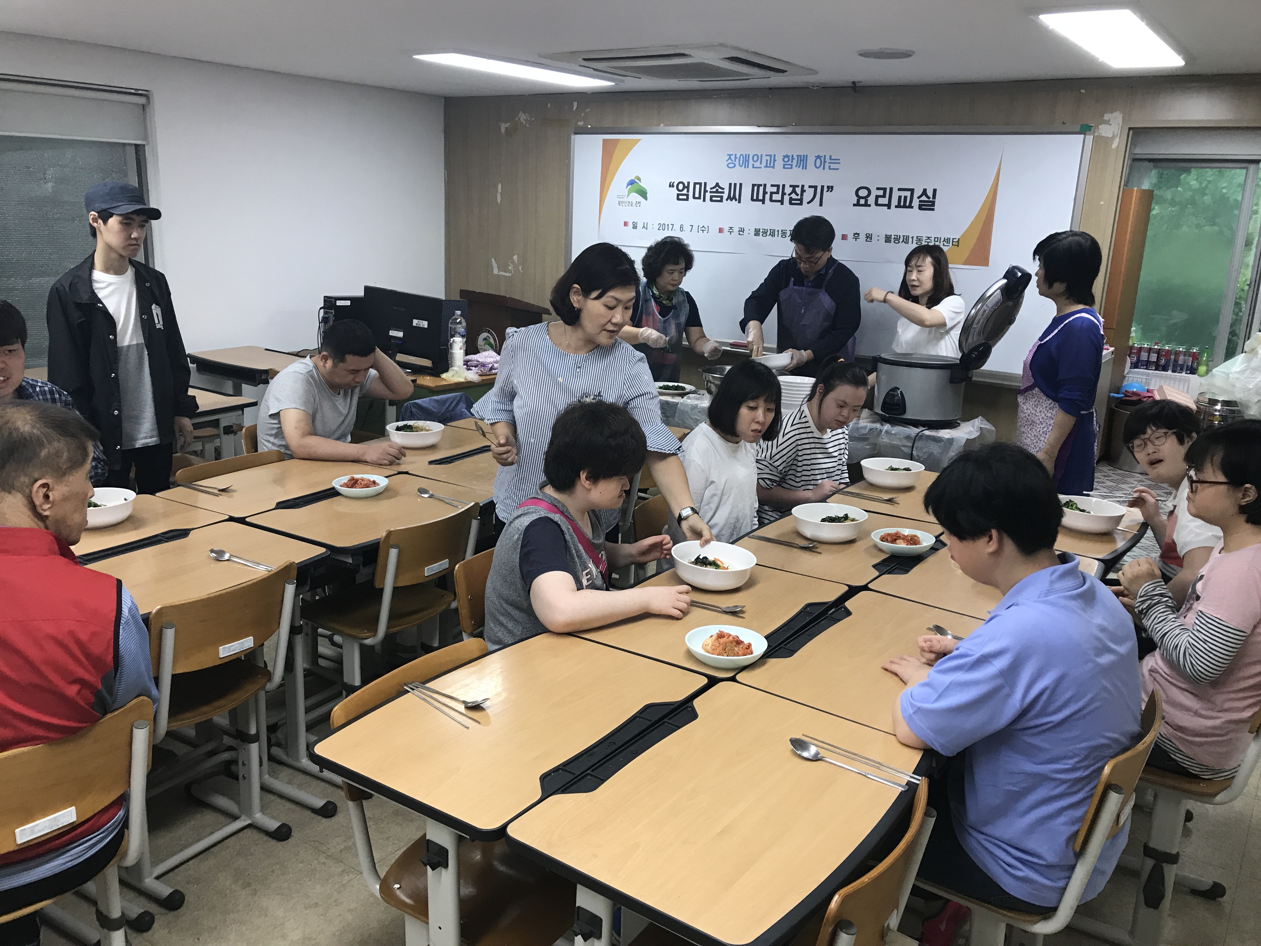 À̳¯ Çà»ç¿¡´Â Àå¾ÖÀεé°ú µ¿ ÀÚ¿øºÀ»ç¼¾ÅÍ °ü°èÀÚ µî 40¿©¸íÀÌ ÇÔ²² Àâ並 ¿ä¸®ÇÏ¿´°í, À̸¦ ÅëÇØ Àå¾ÖÀεéÀÌ ÀÏ»ó»ýȰ¿¡ È¥ÀÚ ÇÒ ¼ö ÀÖ´Â ºÎºÐÀÇ ¹üÀ§¸¦ ³ÐÇô ÀÚ¸³½É °íÃëÇϱâ À§ÇØ ½Ç½Ã µÇ¾ú´Ù.