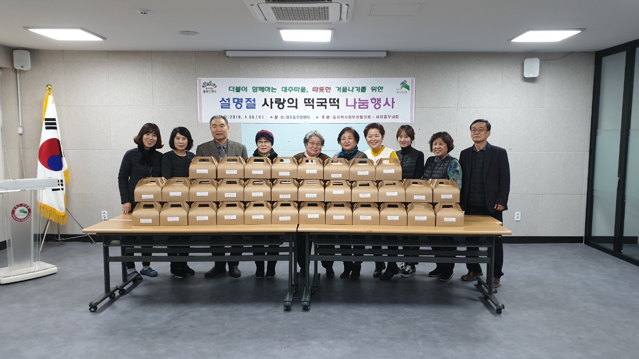´ëÁ¶µ¿ Áֹμ¾ÅÍ(µ¿Àå À¯Çö¼÷)¿¡¼´Â ¼³¸íÀýÀ» ¸Â¾Æ Áö³ 1¿ù 30ÀÏ ´ëÁ¶µ¿ Áö¿ª»çȸº¸ÀåÇùÀÇü(À§¿øÀå ÇÑ¿µ) ¹× »õ¸¶À»ºÎ³àȸ(ȸÀå À̸í¼÷) ÁÖ°üÀ¸·Î ¶±±¹¶± ³ª´®Çà»ç¸¦ ÁøÇàÇÏ¿´´Ù.