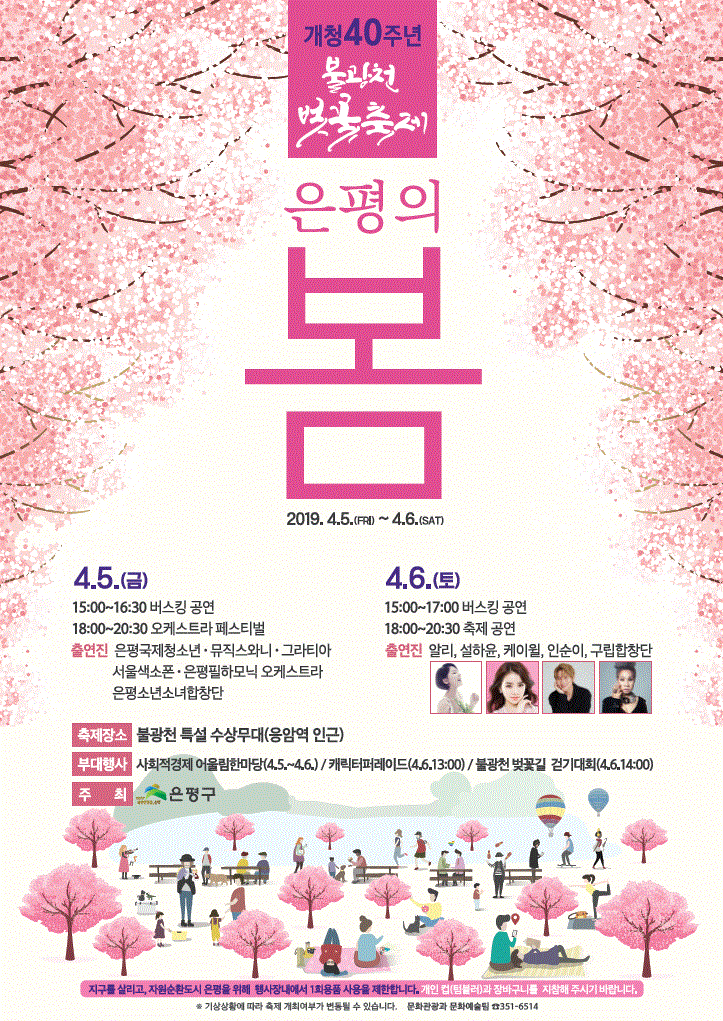 ´Ù¾çÇÑ º¼°Å¸®¿Í ¸ÔÀ»°Å¸® Á¦°øÀ¸·Î Áñ°Å¿î ÃàÁ¦°¡ µÉ °Í ÀºÆò±¸(±¸Ã»Àå ±è¹Ì°æ)´Â ¼¿ï½Ã ´ëÇ¥ º¢²É±æ ºÒ±¤Ãµ¿¡¼ ¡®2019. Á¦8ȸ ºÒ±¤Ãµ º¢²ÉÃàÁ¦¡¯¸¦ 4¿ù 5ÀϺÎÅÍ 6ÀϱîÁö ºÒ±¤Ãµ Ư¼³¼ö»ó¹«´ë(ÀÀ¾Ï¿ª ÀαÙ) ¹× ºÒ±¤Ãµ ÀÏ´ë¿¡¼ 2Àϰ£ °³ÃÖÇÑ´Ù.