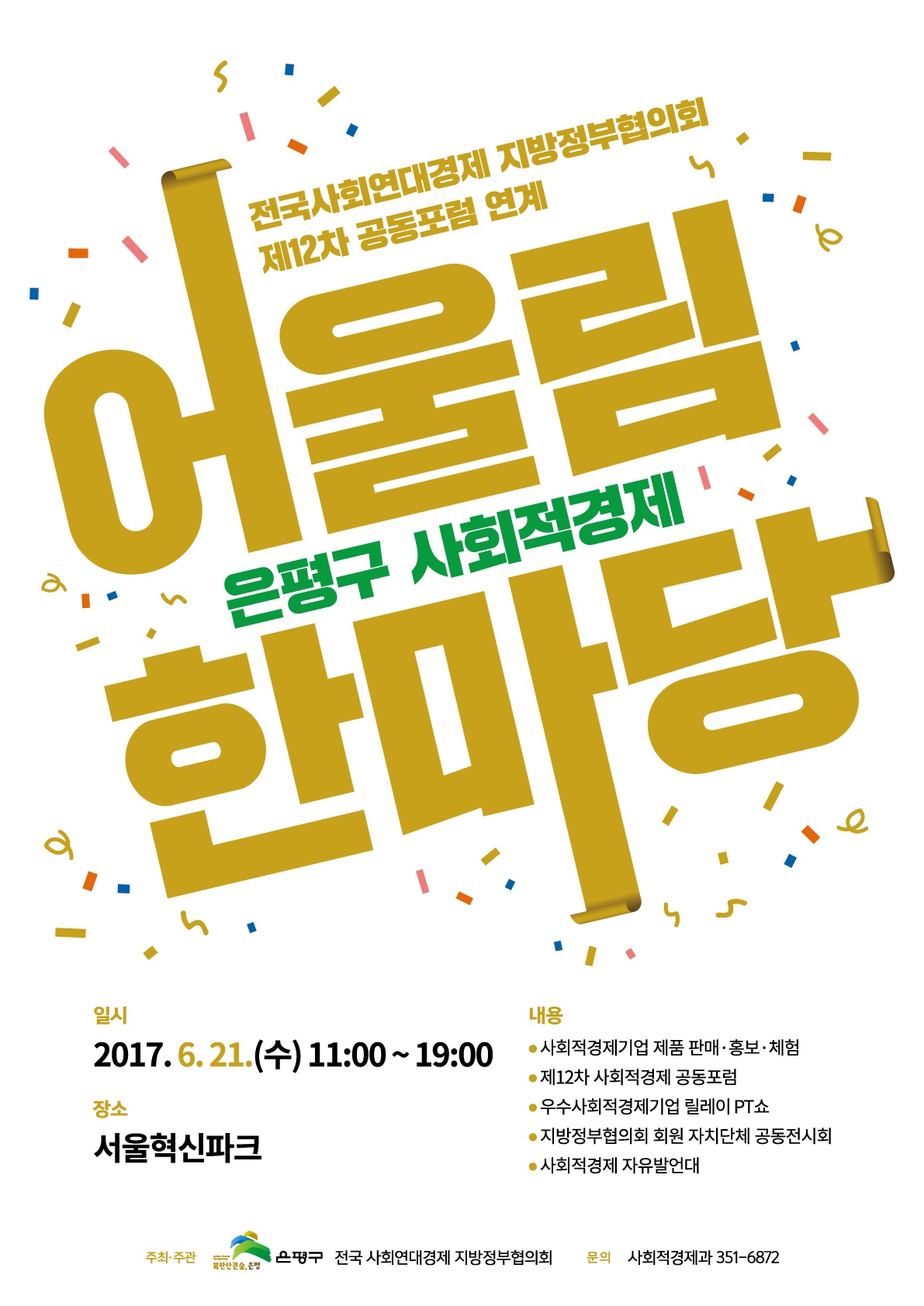 À̳¯ Çà»ç´Â ÀºÆò±¸¿Í Àü±¹»çȸ¿¬´ë°æÁ¦ Áö¹æÁ¤ºÎÇùÀÇȸ°¡ °øµ¿À¸·Î ÁÖÃÖÇÏ´Â °ÍÀ¸·Î, »çȸÀû°æÁ¦ ¾î¿ï¸²ÇѸ¶´ç ÀåÅÍ, Àü±¹»çȸ¿¬´ë°æÁ¦ Áö¹æÁ¤ºÎÇùÀÇȸ Á¦12Â÷ °øµ¿ Æ÷·³, ¿ì¼ö»çȸÀû±â¾÷ È«º¸¸¶´ç µîÀÌ ÆîÃÄÁø´Ù.
