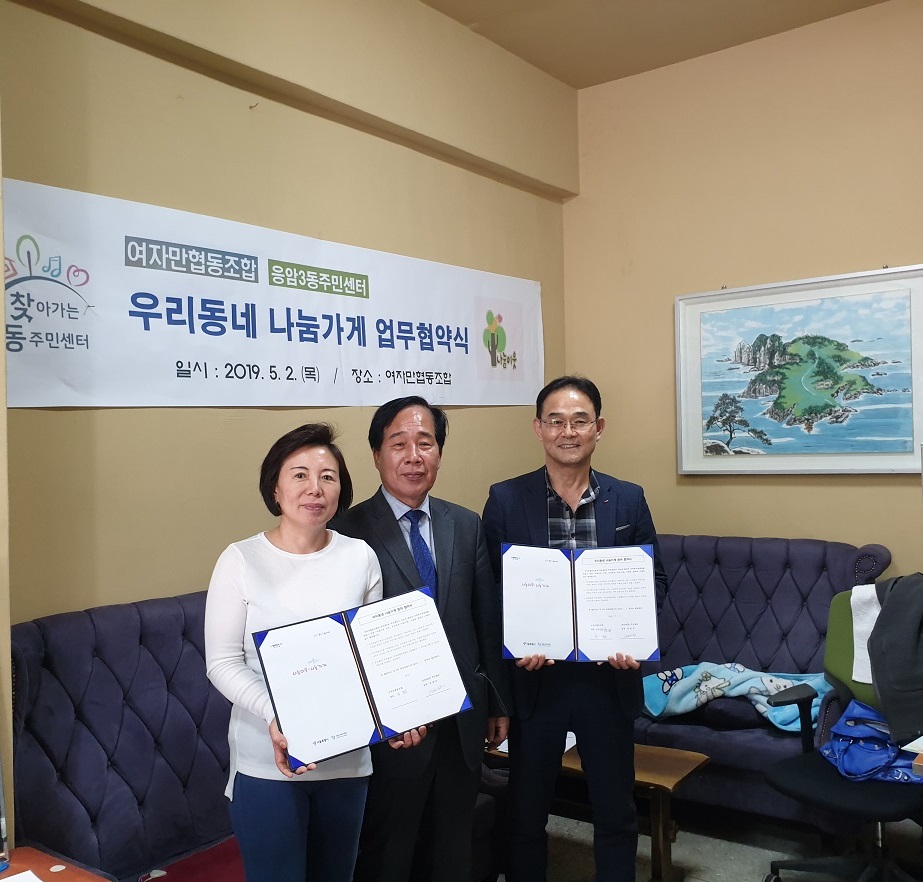 ÀºÆò±¸ ÀÀ¾Ï3µ¿ Áֹμ¾ÅÍ(µ¿Àå ±è¸í¼ö)´Â Áö³ 5¿ù 2ÀÏ ¿©ÀÚ¸¸Çùµ¿Á¶ÇÕ(´ëÇ¥ À¯Á¤Àº)°ú ¾Æ¸§´Ù¿î ÀÌ¿ô, ¿ì¸®µ¿³× ³ª´®°¡°Ô »ç¾÷À» ¼º°øÀûÀ¸·Î ÃßÁøÇϱâ À§ÇÑ ¾÷¹«Çù¾àÀ» ü°áÇÏ¿´´Ù.