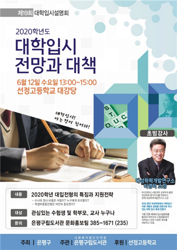 ¡°2020Çг⵵ ´ëÇÐÀԽà Àü¸Á°ú ´ëÃ¥¡±À» ÁÖÁ¦·Î ¿À´Â 12ÀÏ ¼±Á¤°íµîÇб³ ´ë°´ç¿¡¼ Á¦19ȸ ´ëÇÐÀԽü³¸íȸ °³ÃÖ