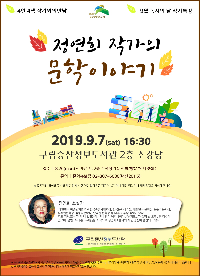 ±¸¸³Áõ»êÁ¤º¸µµ¼°ü(°üÀå ±è¼÷°æ)Àº 9¿ù µ¶¼ÀÇ ´ÞÀ» ¸Â¾Æ Áö¿ªÁֹεéÀÇ µ¶¼ Èï¹Ì¸¦ ºÒ·¯ÀÏÀ¸Å°°íÀÚ 7ÀÏ Åä¿äÀÏ ¿ÀÈÄ 4½Ã 30ºÐ 2Ãþ ¼Ò°´ç¿¡¼´Â ¡®Á¤¿¬Èñ¡¯ÀÛ°¡¸¦ ÃÊûÇÏ¿© ÀÛ°¡¿ÍÀÇ ¸¸³²À» ÁøÇàÇÑ´Ù°í ¹àÇû´Ù.