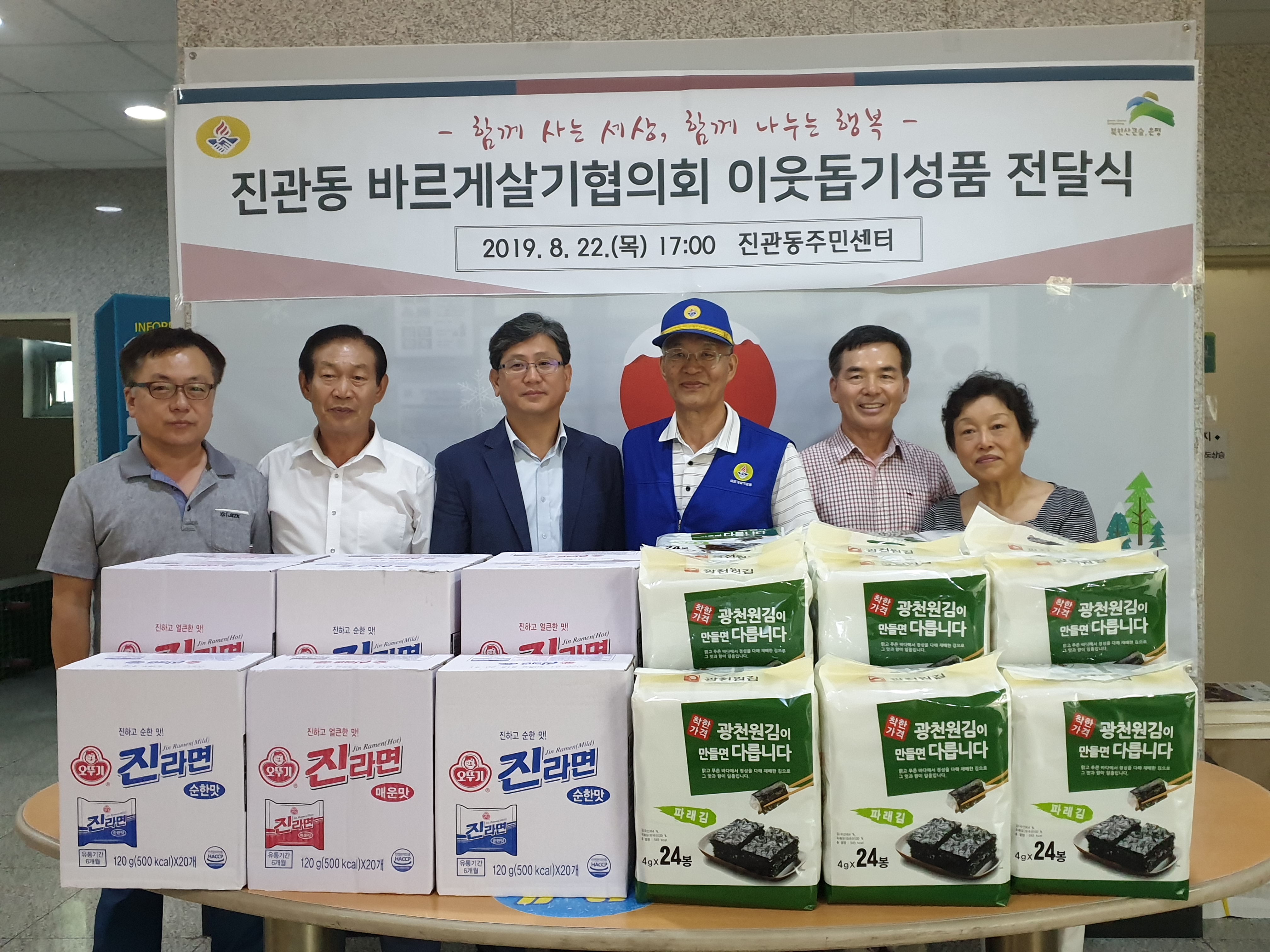 Áø°üµ¿ ¹Ù¸£°Ô»ì±âÇùÀÇȸ´Â ¸Å³â ¼Ò¿ÜµÈ ÀÌ¿ôÀ» À§ÇØ ±è°ú ¶ó¸é µî ÈÄ¿øÇ°À» Áö¿øÇϸç ÀÌ¿ô»ç¶û ½Çõ¿¡ ¾ÕÀå¼°í ÀÖ´Ù.