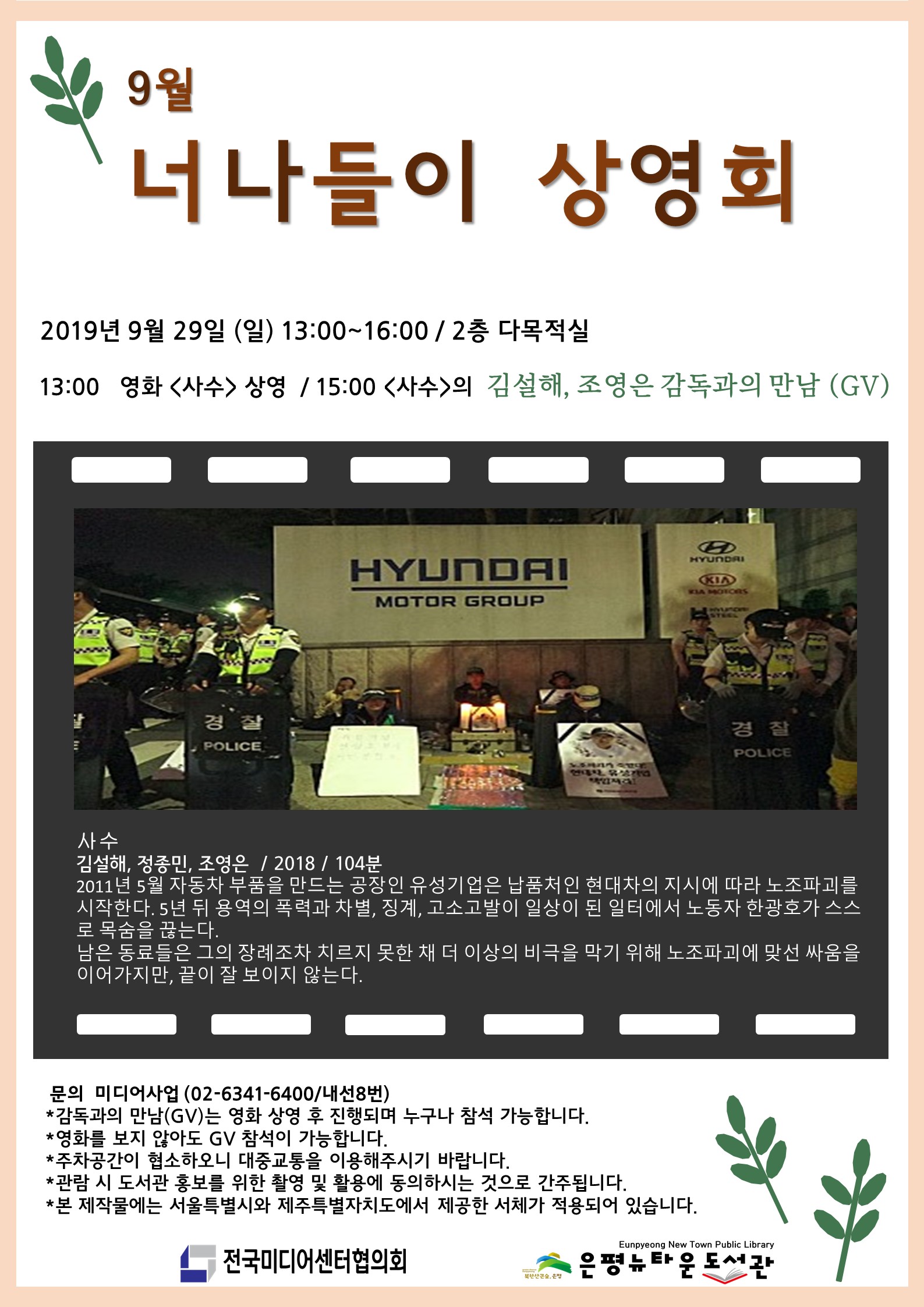 ±¸¸³ÀºÆò´ºÅ¸¿îµµ¼°ü(°üÀå ¹ÚÁ¾¹ü)Àº ¿À´Â 9¿ù 29ÀÏ¿¡ 2019 »ó¿µÁö¿ø»ç¾÷ÀÇ ÀÏȯÀ¸·Î ¡®9¿ù ³Ê³ªµéÀÌ »ó¿µÈ¸¡¯¸¦ °³ÃÖÇÑ´Ù.