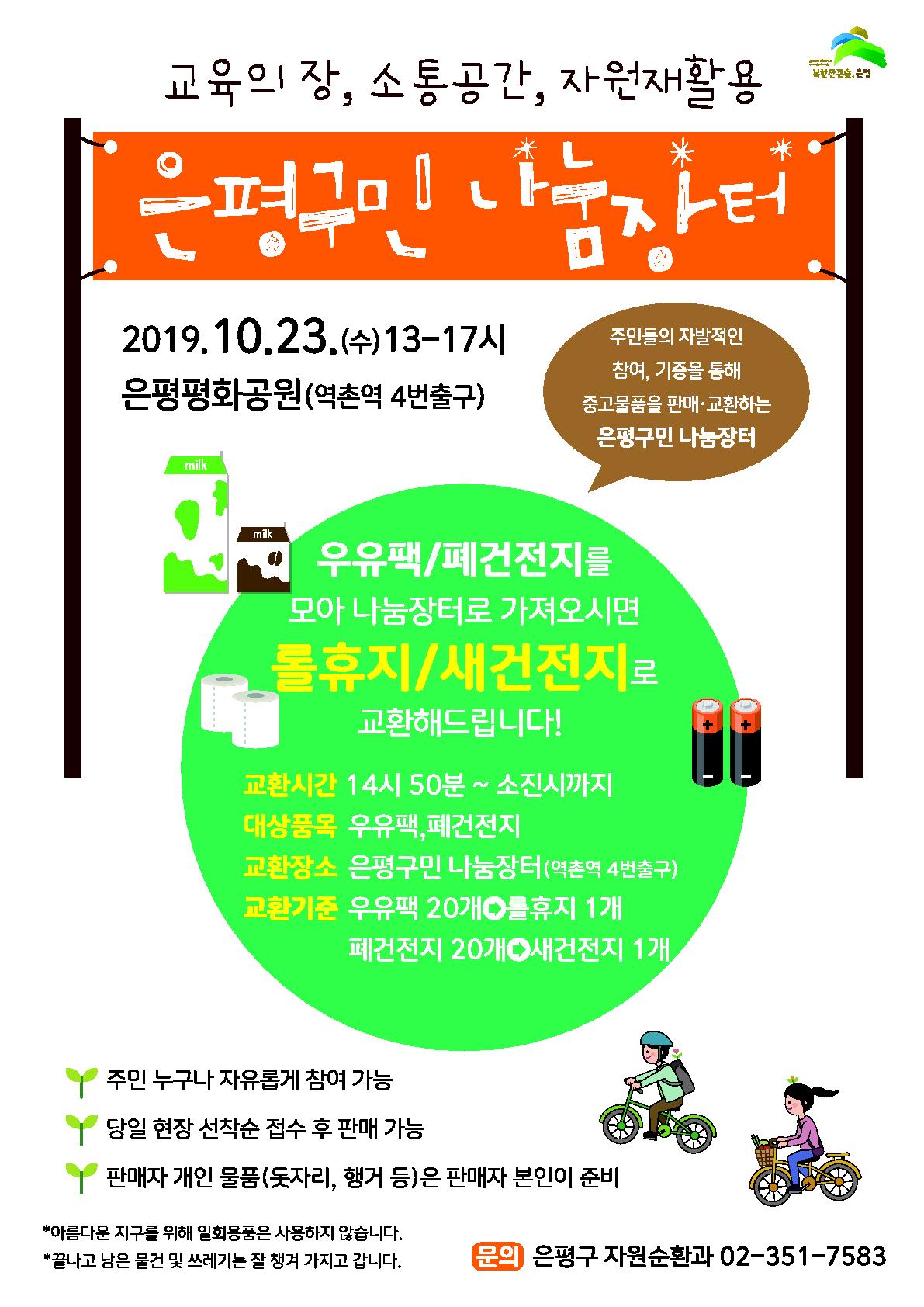 ÀºÆò±¸Ã»¿¡¼´Â 2019³â 10¿ù 23ÀÏ ¿ÀÈÄ 1½Ã, ¿ªÃÌ¿ª ÀºÆò ÆòȰø¿ø¿¡¼ ÀºÆò±¸¹Î ³ª´®ÀåÅ͸¦ °³ÃÖÇÑ´Ù.
