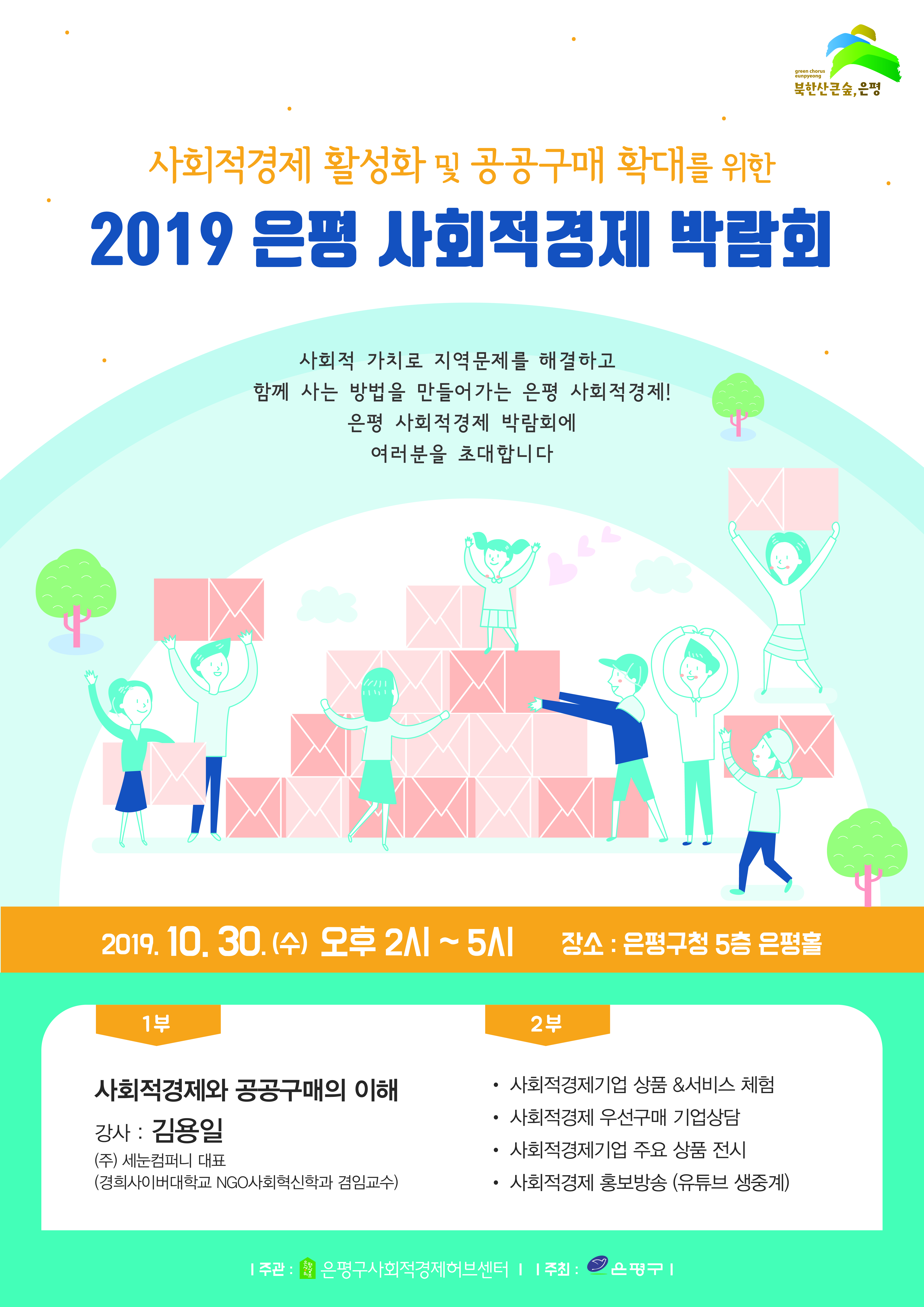 °ø°ø±¸¸Å ¹× ºÐ¾ßº° »ç¾÷ ´ã´ç °ø¹«¿ø Âü¼®ÀÚ¸¦ ´ë»óÀ¸·Î ÇÑ ¡®2019 ÀºÆò »çȸÀû°æÁ¦ ¹Ú¶÷ȸ¡¯ 1ºÎ´Â ¡®»çȸÀû°æÁ¦¿Í °ø°ø±¸¸ÅÀÇ ÀÌÇØ¡¯ ±³À°À» ÁøÇàÇϸç, 2ºÎ´Â »çȸÀû°æÁ¦±â¾÷ »óǰ&¼ºñ½ºÃ¼Çè, »çȸÀû°æÁ¦ ¿ì¼±±¸¸Å ±â¾÷»ó´ã, »çȸÀû°æÁ¦±â¾÷ ÁÖ¿ä »óǰ Àü½Ã, À¯Æ©ºê »ýÁß°è È«º¸¹æ¼ÛÀ¸·Î ÁøÇàµÈ´Ù.