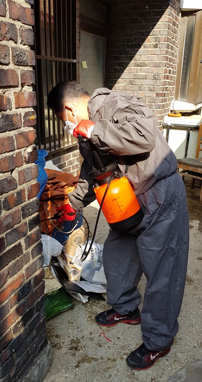 ¸ÕÀú ½Ç¿Ü ÀÛ¾÷ºÎÅÍ ½ÃÀÛÇϴµ¥ ´ë»óÀÚ Áý Àα٠Á¤ÈÁ¶, ¹è¼ö±¸ ÁÖº¯À» 2~3ȸ ¹Ýº¹ÇÏ¿© »ìÃæ, »ì±Õ ¼Òµ¶À» ¹ø°¥¾Æ ½Ç½ÃÇÑ´Ù. ½Ç³» ÀÛ¾÷Àº ¸ÕÀú ÁÖ¹æ°ú ÈÀå½Ç¿¡ ¹Ù¸£´Â ÇØÃæ¾à°ú ULV »ì±Õ ¼Òµ¶À» º´ÇàÇÏ¿© ÁøÇàÇϰí, ¸¶Áö¸·À¸·Î ½Ç³» ¸ðµç °ø°£¿¡ º´ÇØÃæ »ìÃæ ¼Òµ¶À» Çϰí 10¿©ºÐ ȯ±â½ÃŰ¸é ¸ðµç ÀÛ¾÷ÀÌ ¸¶¹«¸® µÈ´Ù.