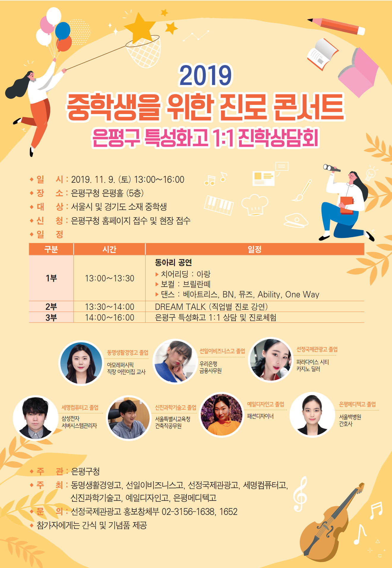 À̹ø Çà»ç¿¡´Â Ư¼ºÈ°íµîÇб³ 7°³±³(µ¿¸í¿©ÀÚÁ¤º¸»ê¾÷°í, ¼±ÀÏÀ̺ñÁî´Ï½º°í, ¼±Á¤±¹Á¦°ü±¤°í, ¼¼¸íÄÄÇ»ÅͰí, ½ÅÁø°úÇбâ¼ú°í, ¿¹ÀϵðÀÚÀΰí, ÀºÆò¸ÞµðÅØ°í)°¡ Âü¿©ÇØ 1:1 Áø·ÎüÇè ¹× »ó´ãÀ» ÁøÇàÇÒ ¿¹Á¤ÀÌ´Ù.