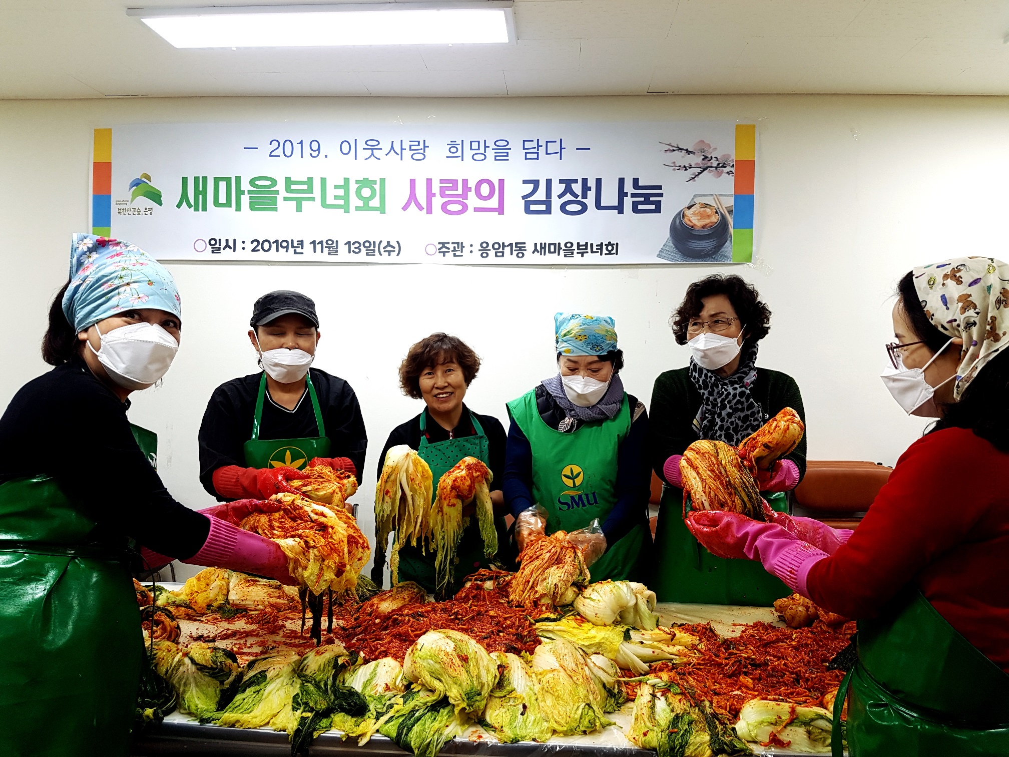 ÀÀ¾Ï1µ¿ »õ¸¶À»ºÎ³àȸ´Â 11¿ù 13ÀÏ ÀÀ¾Ï1µ¿ Áֹμ¾ÅÍ¿Í ÇÔ²² ¡°2019³â »ç¶ûÀÇ ±èÀ峪´®¡±Çà»ç¸¦ °³ÃÖÇÏ¿© ±èÀå±èÄ¡ 400kgÀ» ´ã°¡ Áö¿ª¾Æµ¿¼¾Å͸¦ ºñ·ÔÇÑ Àú¼Òµæ°èÃþ 40¿©°¡±¸¿¡ ³ª´©¾îÁÖ¾ú´Ù.