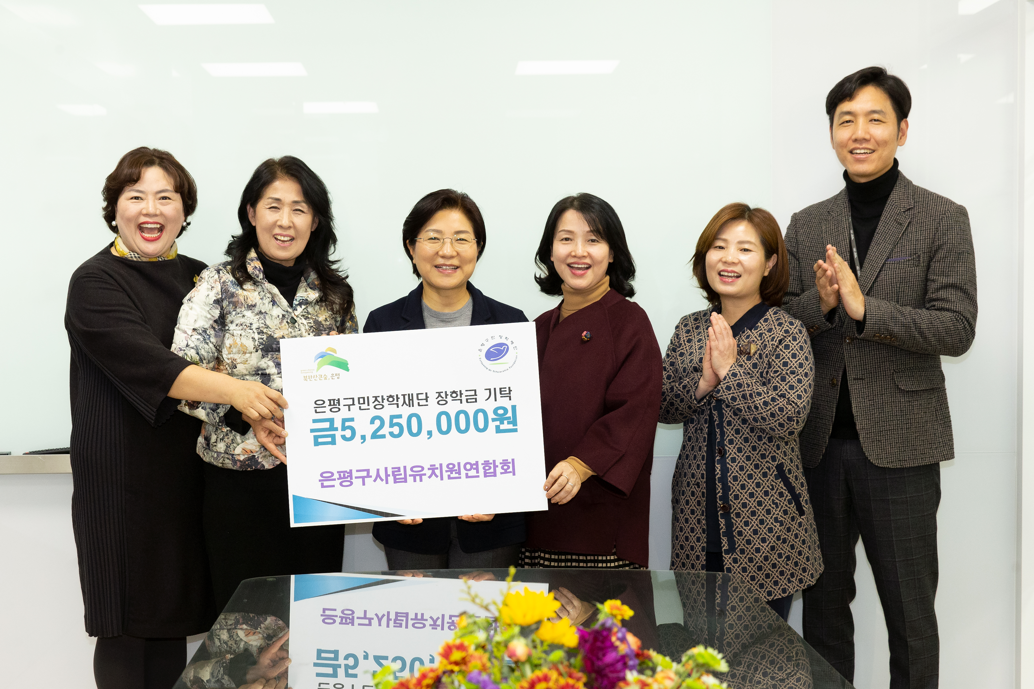 ÀºÆò±¸ »ç¸³À¯Ä¡¿ø¿¬ÇÕȸ(ȸÀå Á¤±Ý¼÷)´Â 11¿ù 22ÀÏ, ÀºÆò±¸¹ÎÀåÇÐÀç´Ü(ÀÌ»çÀå ¼Õ´ÞÀÍ)¿¡ ÀåÇбÝÀ¸·Î ½á ´Þ¶ó¸ç °ü³» 28°³ »ç¸³À¯Ä¡¿ø¿¡¼ ¸ðÀº µ· ÃÑ 5,250,000¿øÀ» ±âŹÇÏ¿´´Ù.