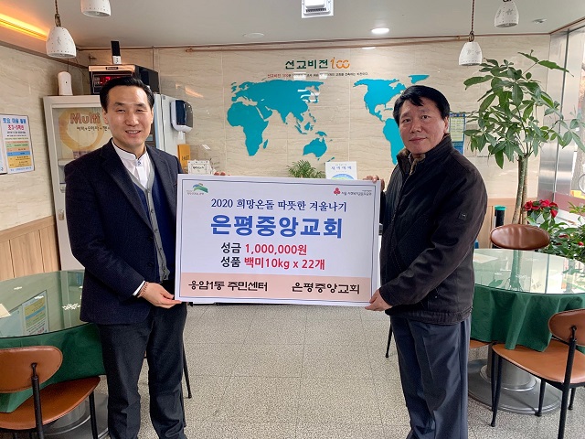 ÀÀ¾Ï1µ¿ Áֹμ¾ÅÍ(µ¿Àå ¹ÚÇö¹®)¿¡¼´Â 2¿ù 7ÀÏ °ü³» ÀºÆòÁß¾Ó±³È¸ ±³ÀεéÀÌ ½Ê½ÃÀÏ¹Ý ¸ðÀº ¡°¼º±Ý 100¸¸¿ø°ú ¹é¹Ì 220kg¡±À» ºÒ¿ìÀÌ¿ôµ½±â¿¡ ³»³ö ÇÑÆÄ¿Í ½ÅÁ¾Äڷγª¹ÙÀÌ·¯½º °¨¿°À§±â·Î ¾ó¾îºÙÀº Áö¿ª»çȸºÐÀ§±â¿¡ ¿Â±â¸¦ ºÒ¾î³Ö°í ÀÖ´Ù.