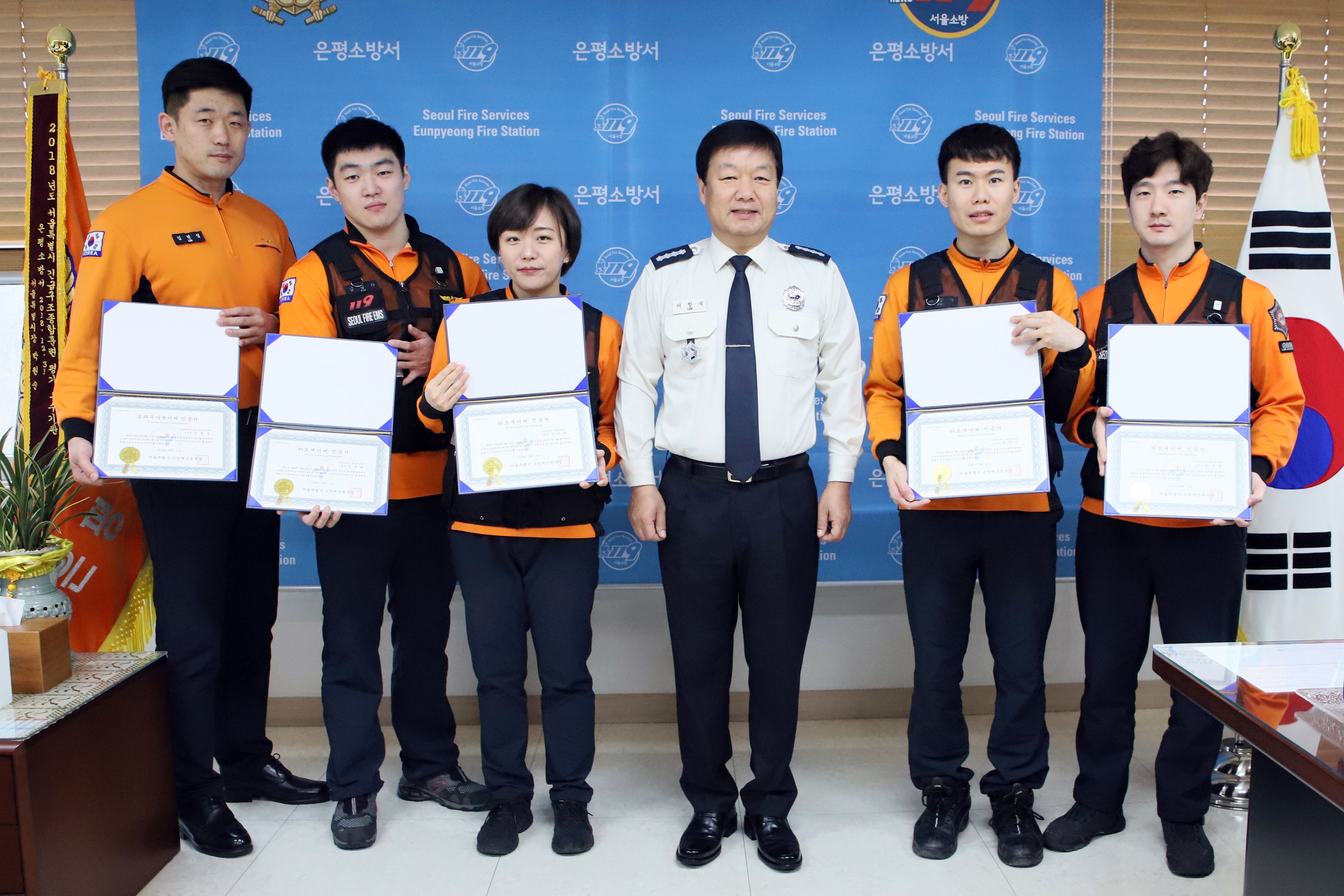 ¼¿ï ÀºÆò¼Ò¹æ¼(¼Àå ÀÌâ½Ä)´Â 13ÀÏ ¿ÀÀü ¼Àå½Ç¿¡¼ ÁßÁõÀÀ±ÞȯÀÚ¿¡ ´ëÇÑ ½Å¼Ó¡¤Á¤È®ÇÑ ÀÀ±Þóġ¸¦ ÅëÇÏ¿© ¼ÒÁßÇÑ »ý¸íÀ» »ì¸° ¼Ò¹æ°ø¹«¿ø¿¡°Ô Æ®¶ó¿ì¸¶¼¼À̹ö ÀÎÁõ¼ ¹× ÇÏÆ®¼¼À̹ö ÀÎÁõ¼¿Í ¹èÁö¸¦ ¼ö¿©Çß´Ù.