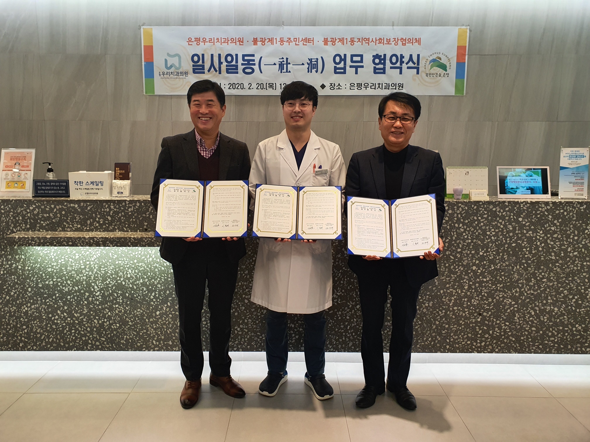 ºÒ±¤Á¦1µ¿Áֹμ¾ÅÍ(µ¿Àå ÀÌ¿ëÈñ)¿Í ºÒ±¤Á¦1µ¿Áö¿ª»çȸº¸ÀåÇùÀÇü(À§¿øÀå Á¶»óÈñ)´Â ÀºÆò¿ì¸®Ä¡°úÀÇ¿ø(¿øÀå ¹Ú½½Áö)°ú 2¿ù 20ÀÏ ÀºÆò¿ì¸®Ä¡°úÀÇ¿ø¿¡¼ ÀÇ·á¾ÈÀü¸Á ±¸ÃàÀ» À§ÇÑ ÀÏ»çÀϵ¿(ìéÞäìéÔ×)¾÷¹«Çù¾àÀ» ü°áÇÏ¿´´Ù.