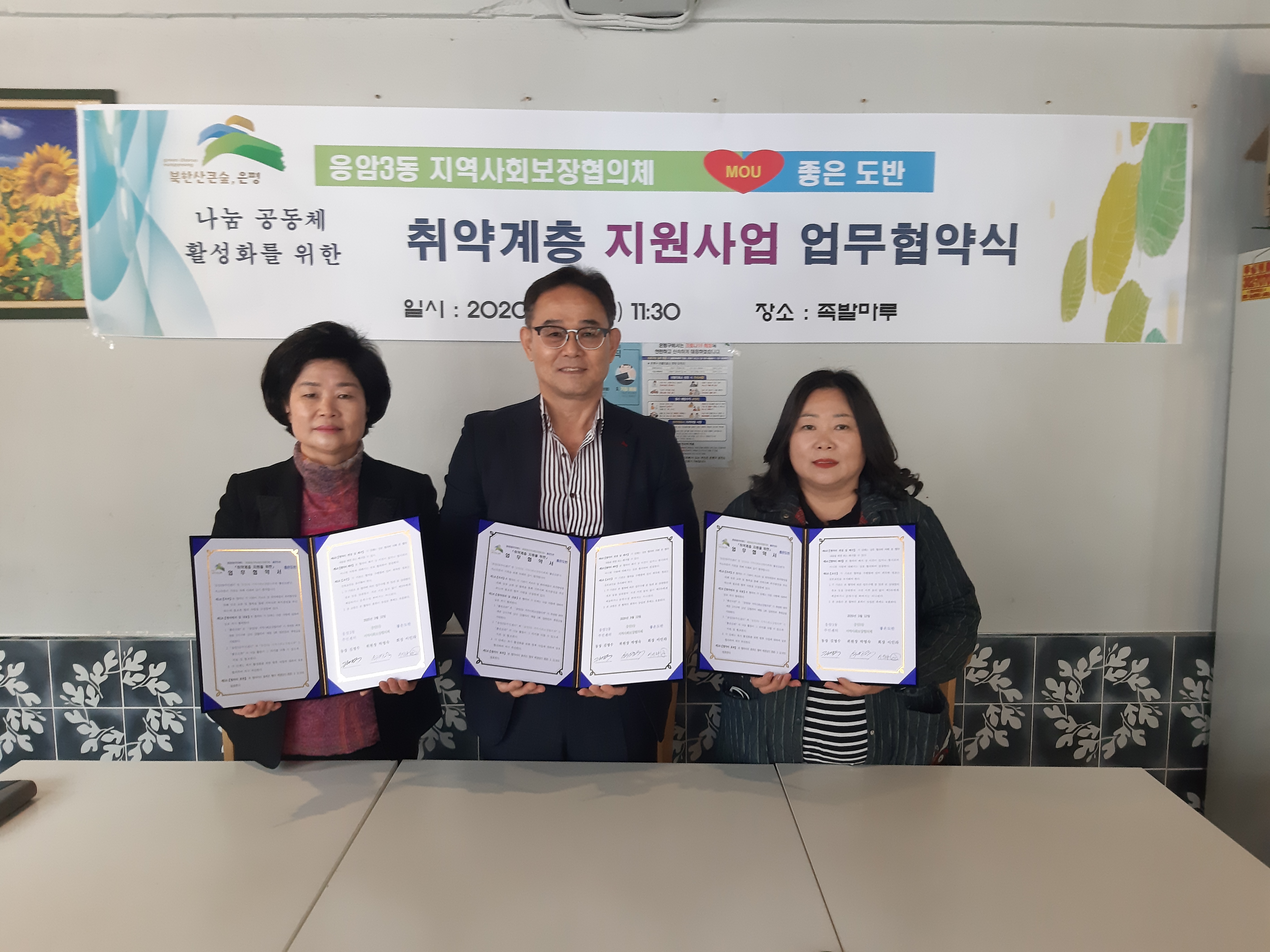 ÀÀ¾Ï3µ¿ Áö¿ª»çȸº¸ÀåÇùÀÇü(À§¿øÀå ¹Ú¿µ¼÷)´Â ÀºÆò±¸ ³» ÀÚ¿µ¾÷ÀÚµé·Î ±¸¼ºµÈ ºÀ»ç ´ÜüÀÎ ¡®ÁÁÀº µµ¹Ý¡¯(ȸÀå ÀÌÀζó)°ú 3¿ù 12ÀÏ¿¡ ¾÷¹«Çù¾àÀ» ¸Î¾ú´Ù.