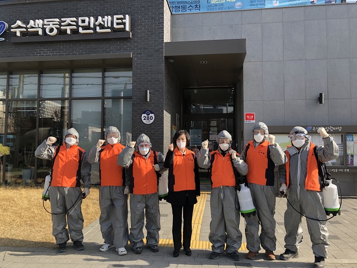 ¼ö»öµ¿(µ¿Àå ¹Ú¿µ¹Ì)Àº Áö³ 20ÀÏ ¼ö»öµ¿ ÅëÀåÇùÀÇȸ ¹× ¹°ºû¸¶À» Áö¿ª»çȸº¸ÀåÇùÀÇü¿Í ÇÔ²² Äڷγª19 °¨¿° ¿¹¹æÀ» À§ÇÑ ¹æ¿ªÀ» ½Ç½ÃÇÏ¿´´Ù.