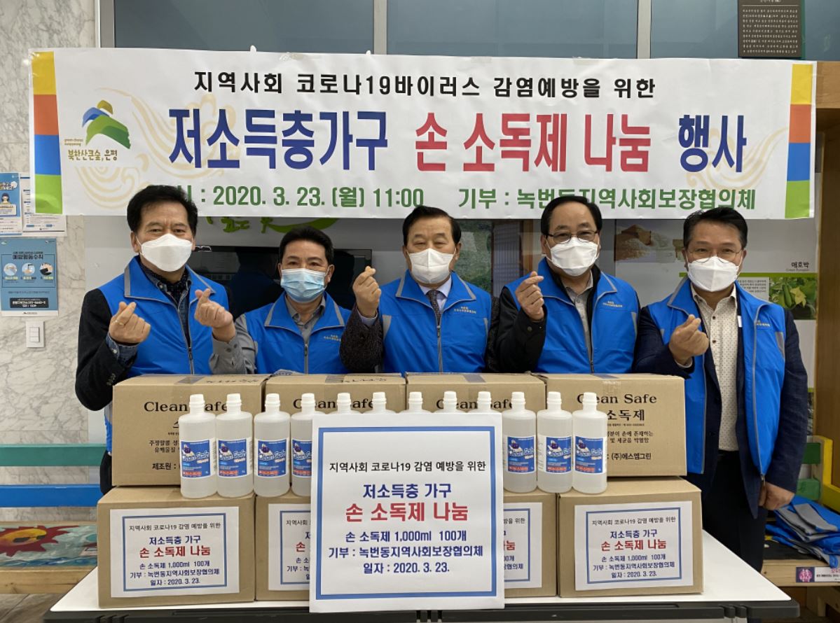 ³ì¹øµ¿(µ¿Àå ±èÀ±½Ä)Àº Áö³ 3¿ù 23ÀÏ ³ì¹øµ¿Áö¿ª»çȸº¸ÀåÇùÀÇü·ÎºÎÅÍ Äڷγª19 °¨¿°¿¹¹æÀ» À§ÇÑ ¼Õ¼Òµ¶Á¦ 100°³(50¸¸¿ø »ó´ç)¸¦ ±âºÎ¹Þ¾Ò´Ù°í ¹àÇû´Ù.