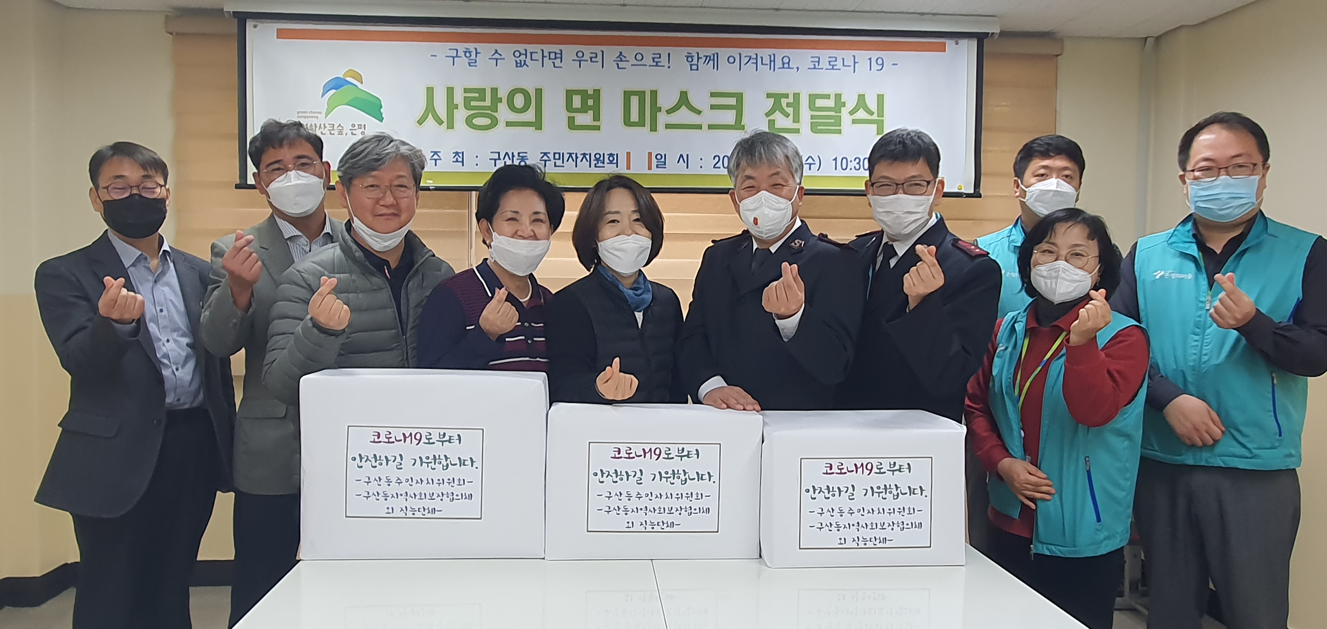 À̳¯ Àü´ÞÇÑ ¸é ¸¶½ºÅ©´Â ±¸»êµ¿ÁÖ¹ÎÀÚÄ¡À§¿øÈ¸(À§¿øÀå ÀÌ»óÈÆ)¿Í µ¿ Áö¿ª»çȸº¸ÀåÇùÀÇü(À§¿øÀå À¯ÇØ¿µ) µî °¢ Á÷´É´Üü À§¿øµéÀÌ Âü¿©ÇÑ °¡¿îµ¥ Áö³ 3¿ù 23ÀϺÎÅÍ 31ÀϱîÁö Á÷Á¢ ¼Õ¹Ù´ÀÁú°ú ÀçºÀƲÀ» ÀÌ¿ëÇÏ¿© ¸¸µé¾î ±× Àǹ̸¦ ´õÇß´Ù.