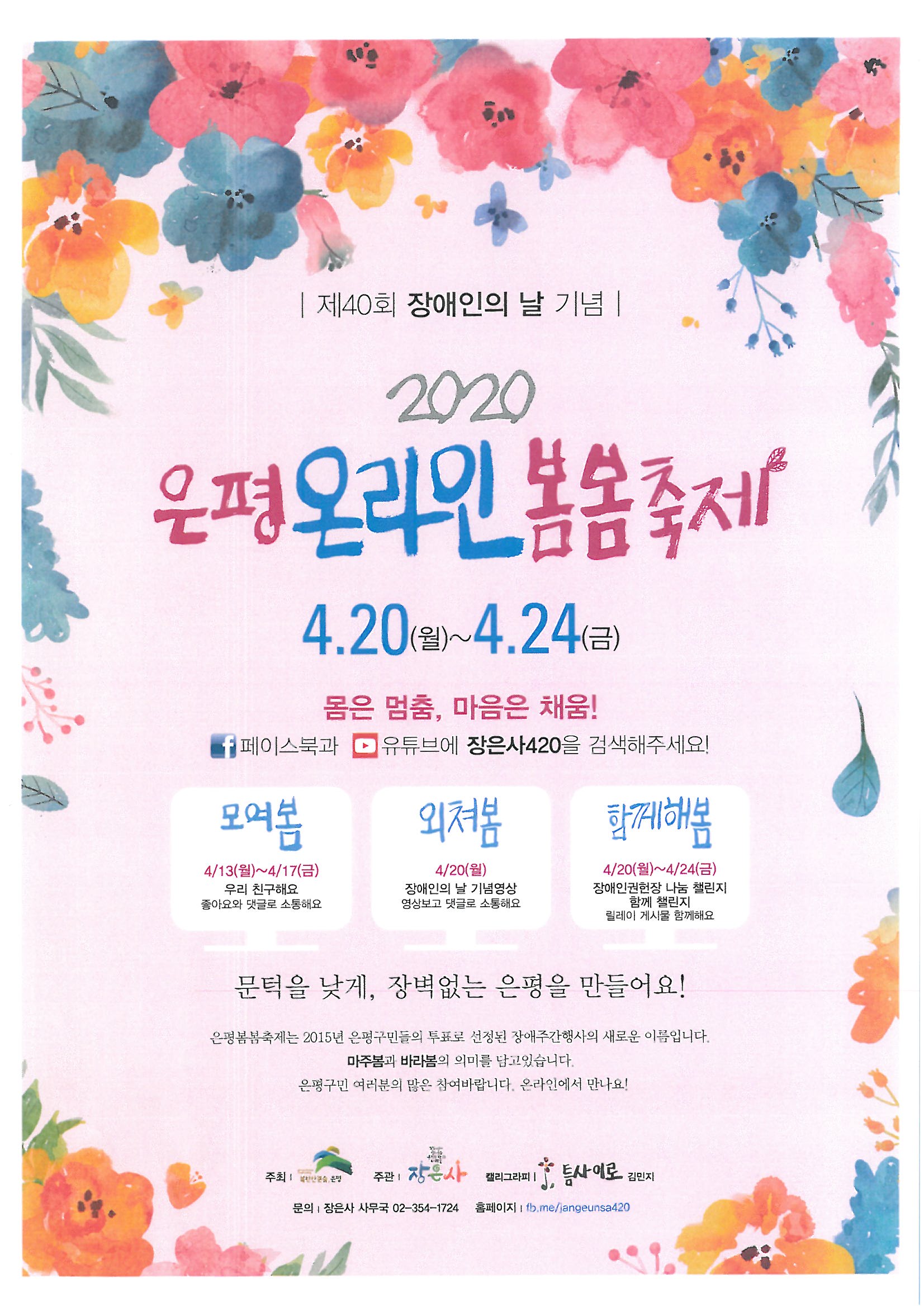 ÀºÆò±¸)´Â 'Á¦40ȸ Àå¾ÖÀÎÀÇ ³¯'À» ±â³äÇØ 20ÀϺÎÅÍ 24ÀϱîÁö ¿Â¶óÀÎÀ» ÅëÇØ '2020³â ÀºÆò¿Â¶óÀκ½º½ÃàÁ¦'¸¦ °³ÃÖÇÑ´Ù°í ¹àÇû´Ù.