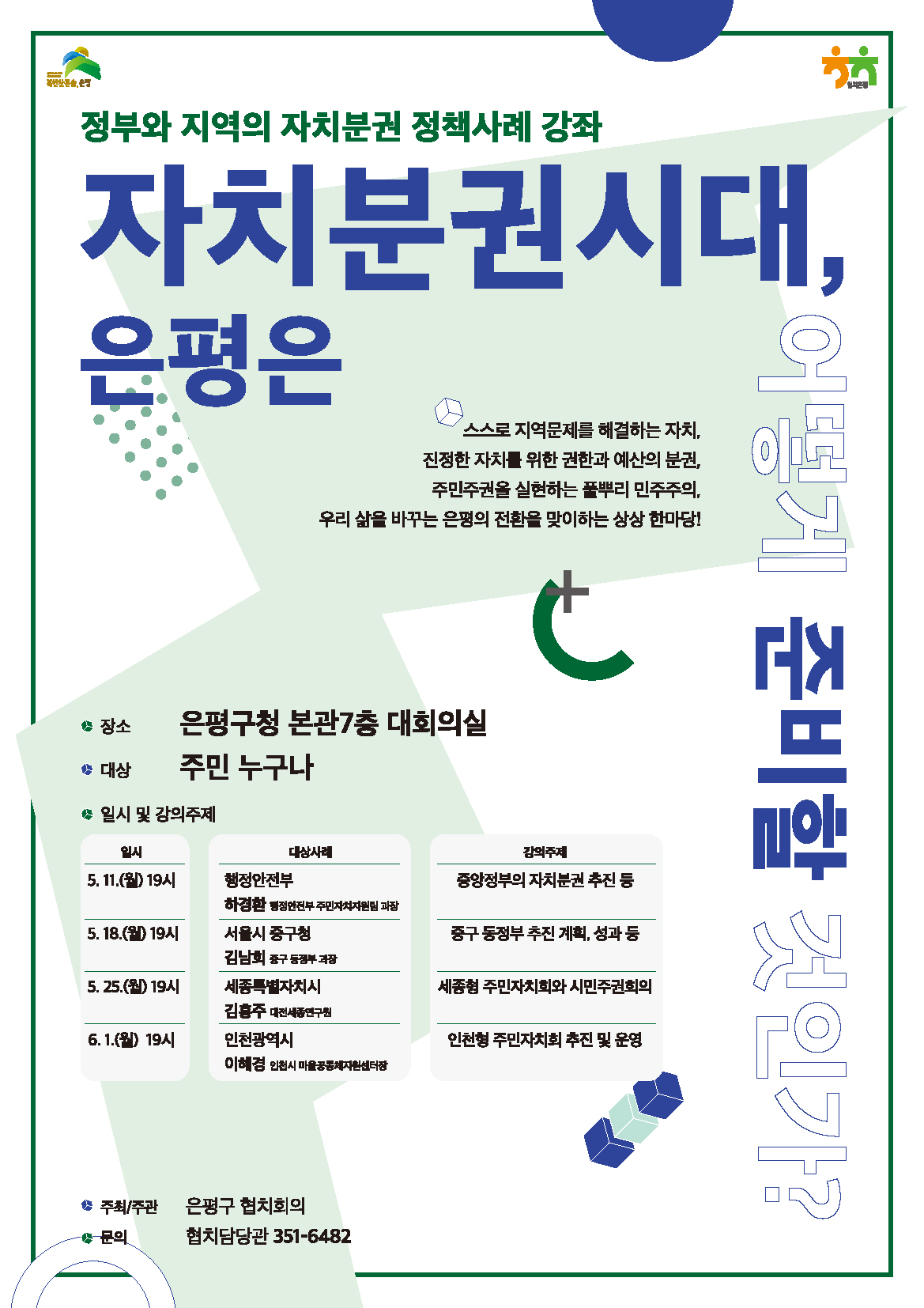 ÇÁ·Î±×·¥À» ±âȹÇÑ ÀºÆò±¸ ÇùġȸÀÇ µ¿´ÜÀ§ÇùÄ¡±¸Á¶¸¸µé±â ¹Î°ü°øµ¿±âȹ´ÜÀº ¸¶À»´ÜÀ§ÀÇ ÁÖ¹ÎÁÖµµÀû ÇùÄ¡±â¹ÝÀ» ±¸ÃàÇÏ°í µ¿´ÜÀ§ ÁÖ¹ÎÀÚÄ¡ºÐ±ÇÀÇ Àå±â ·Îµå¸ÊÀ» ¼ö¸³ÇÏ¿©, ȯ°æº¯È¿Í »ó°ü¾øÀÌ ÀϰüµÈ ÀÚÄ¡ºÐ±Ç ÃßÁøÀ» µ½±â À§ÇØ °á¼ºµÈ ¹Î°üÇùÄ¡ °Å¹ö³Í½ºÀÌ´Ù. À̹ø ÀÚÄ¡ºÐ±Ç Á¤Ã¥°Á´ ¼±Áø»ç·ÊÀÇ ¼º°ú¿Í ¹®Á¦Á¡¿¡ ´ëÇÑ ÀÌÇØ¸¦ ¹ÙÅÁÀ¸·Î ÀºÆòÇü ¸ðµ¨À» Á¤¸³Çϱâ À§ÇÑ Ã¹°ÉÀ½ÀÌ´Ù.