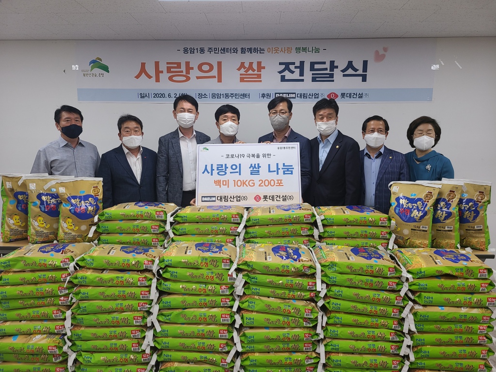 ÀÀ¾Ï1µ¿ Áֹμ¾ÅÍ(µ¿Àå ¹ÚÇö¹®)¿¡¼´Â 2020³â 6¿ù 2ÀÏ ¿ÀÀü 10½Ã ³ì¹ø¿ªeÆíÇѼ¼»ó ij½½(ÀÀ¾Ï2±¸¿ª Àç°³¹ßÁ¶ÇÕ Á¶ÇÕÀå °øÀåÇö) ½Ã°ø»çÀÎ ´ë¸²»ê¾÷(ÁÖ)°ú ·Ôµ¥°Ç¼³(ÁÖ)ÀÌ Äڷγª19 È®»êÀ¸·Î °æÁ¦Àû ¾î·Á¿òÀ» °Þ´Â Áö¿ªÁֹεéÀ» À§ÇØ ½á´Þ¶ó¸ç¡°¹é¹Ì 10kg 200Æ÷¡±¸¦ Àü´ÞÇÏ´Â ¶æ±íÀº Çà»ç°¡ ÁøÇàµÇ¾ú´Ù