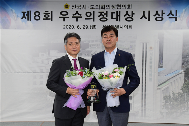 ¼¿ï½ÃÀÇȸ ¼ºÈìÁ¦ ÀÇ¿ø(´õºÒ¾î¹ÎÁִ硤ÀºÆò1)Àº 29ÀÏ Àü±¹½ÃµµÀÇȸÀÇÀåÇùÈñ¿¡¼ ÁÖ°üÇϴ¡¸Á¦8ȸ ¿ì¼öÀÇÁ¤´ë»ó ½Ã»ó½Ä¡¹¿¡¼ ¡®¿ì¼öÀÇÁ¤´ë»ó¡¯À» ¼ö»óÇß´Ù.