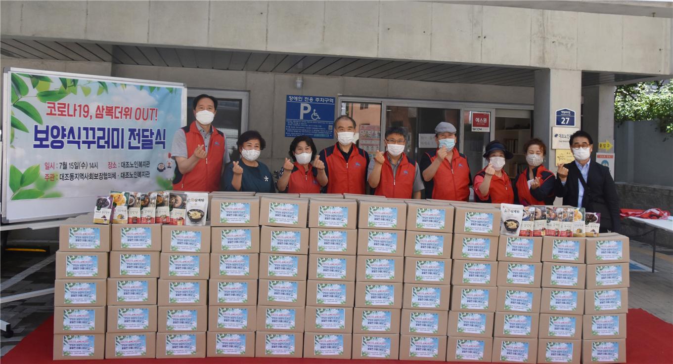 ´ëÁ¶µ¿ Áֹμ¾ÅÍ(µ¿Àå À¯Çö¼÷)¿Í µ¿Áö¿ª»çȸº¸ÀåÇùÀÇü, ´ëÁ¶³ëÀκ¹Áö°üÀº 7¿ù 16ÀÏ Ãʺ¹À» ¸ÂÀÌÇÏ¿© ¹«´õÀ§¿Í Äڷγª Àå±âÈ·Î ÁöÄ£ °ü³» Àú¼Òµæ µ¶°Å¾î¸£½Å°ú Áß¡¤Àå³â 1ÀÎ °¡±¸¸¦ ´ë»óÀ¸·Î »ç¶ûÀÇ º¸¾ç½Ä ³ª´® Çà»ç¸¦ ½Ç½ÃÇÏ¿´´Ù.