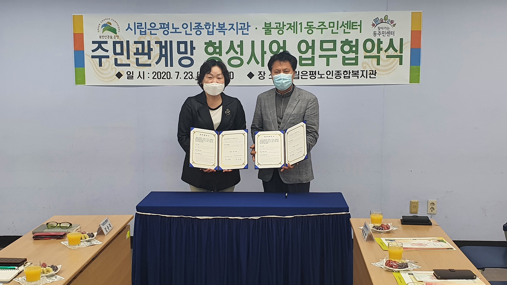 ºÒ±¤1µ¿ Áֹμ¾ÅÍ(µ¿Àå ±ÇÁ¤ÅÂ)´Â ¼¿ï½Ã¸³ÀºÆò³ëÀÎÁ¾ÇÕº¹Áö°ü(°üÀå ±è½ÂÀÚ)°ú 2020³â 7¿ù 23ÀÏ) ½Ã¸³ÀºÆò³ëÀÎÁ¾ÇÕº¹Áö°ü¿¡¼ °íµ¶»ç ¿¹¹æ ¹× »çȸÀû °í¸³°¡±¸ ¾ÈÀü¸Á È®ÃæÀ» À§ÇÑ Áֹΰü°è¸Á Çü¼º »ç¾÷ ¡®È÷È÷³«³«(Knock2)¡¯À» ÇÔ²² ÁøÇàÇϱâ À§ÇÑ ¾÷¹«Çù¾à½ÄÀ» ÁøÇàÇÏ¿´´Ù.