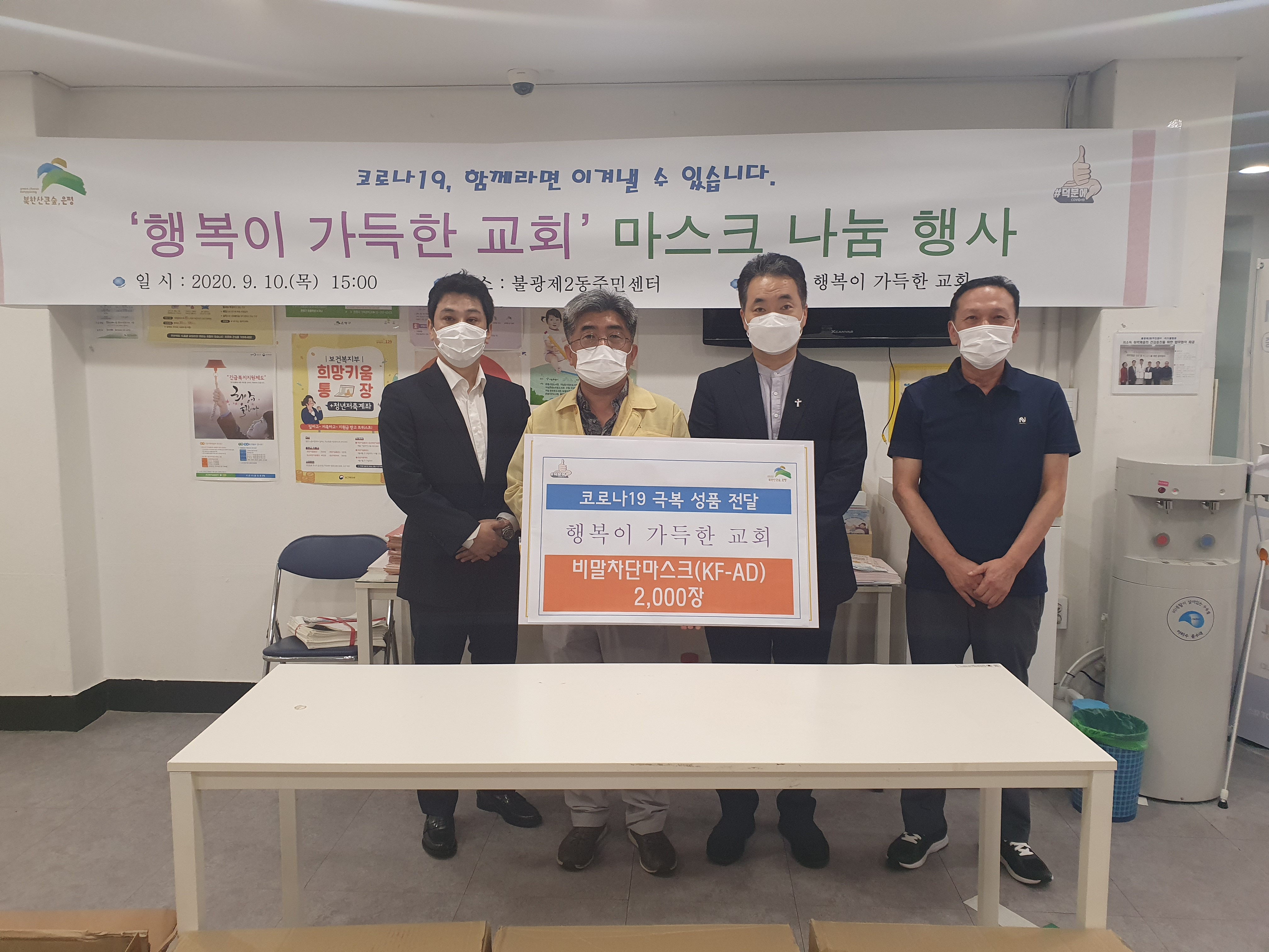 2020³â 9¿ù 10ÀÏ °ü³» ¡®ÇູÀÌ °¡µæÇÑ ±³È¸¡¯¿¡¼´Â ºÒ±¤2µ¿ Áֹμ¾ÅÍ(µ¿Àå °í¹ü¼®)¿¡ »ç¶ûÀÇ ¸¶½ºÅ© 2,000¸Å¸¦ Àü´ÞÇÏ¿´´Ù.